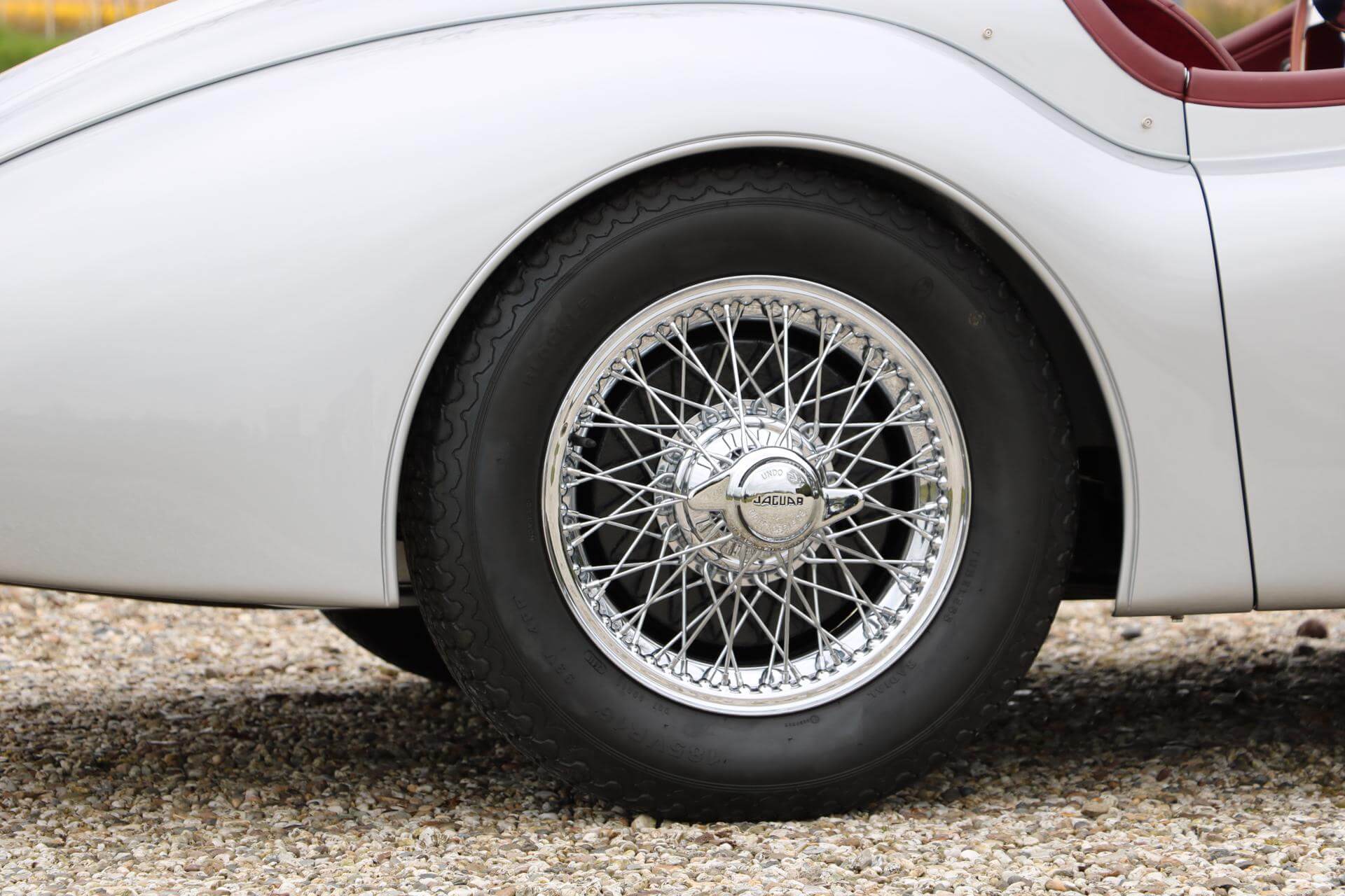 In 2014, this Jaguar XK120 Roadster was treated to a full restoration, including a total engine rebuild, by a retired Classic Motor Cars employee. All bodywork and paintwork refurbishment was done by Brookfield Classics and Classic Motor Cars. In essence, this car has been restored by some of the best Jaguar specialists in the Midlands where it originated. The only concessions to modern-day convenience are a Cosworth five-speed gearbox, extended pedal box for taller drivers, bonnet louvres to assist engine cooling, disc brakes to the front, a non-standard steering wheel, and bucket seats.