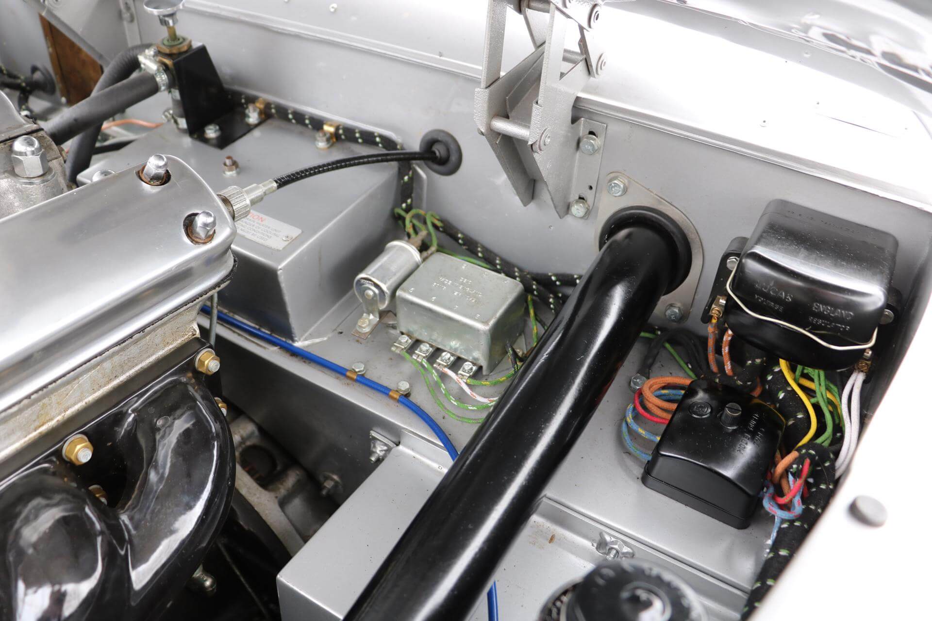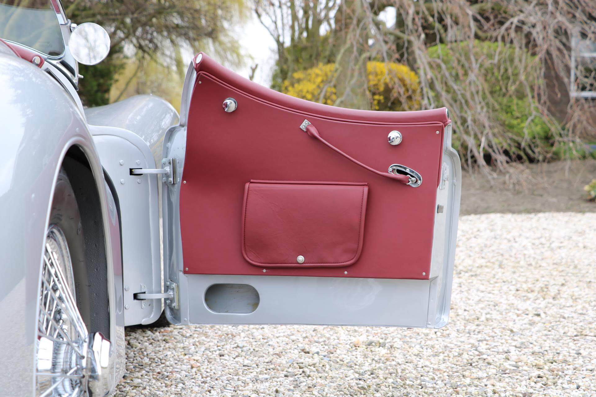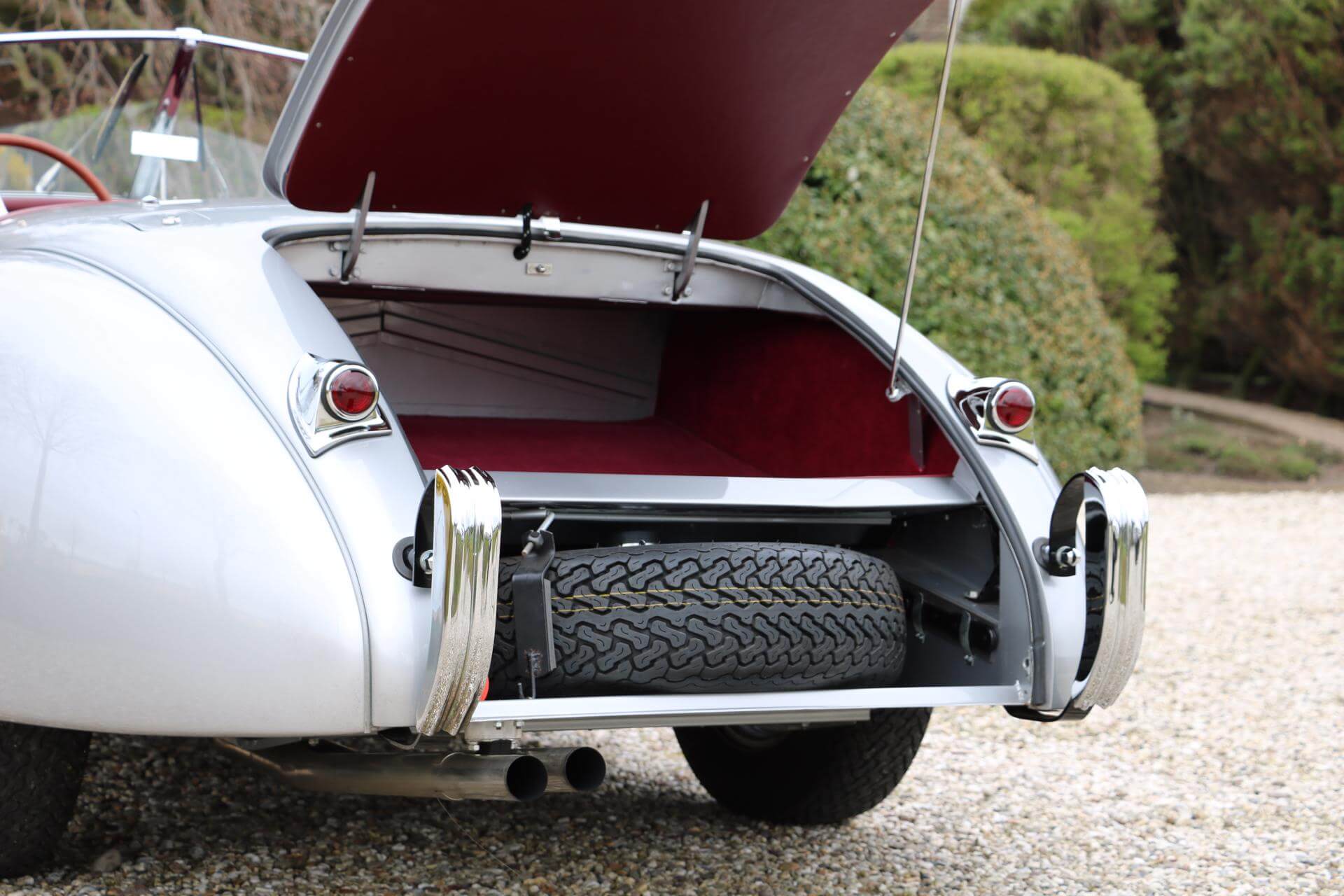 The XK was specified to be a practical and fast classic road car. It has been used once at the Shelsley Walsh hill climb but has largely been cosseted as part of the private Springbourne Collection; indeed, only some 1,000 ‘shakedown’ kilometres have been covered since the restoration’s completion in 2014. Offered with a Jaguar Heritage Certificate and Dutch registration document, the car comes with an unused red tonneau (matching the hood cover), a jack, and a spare spoked wheel.