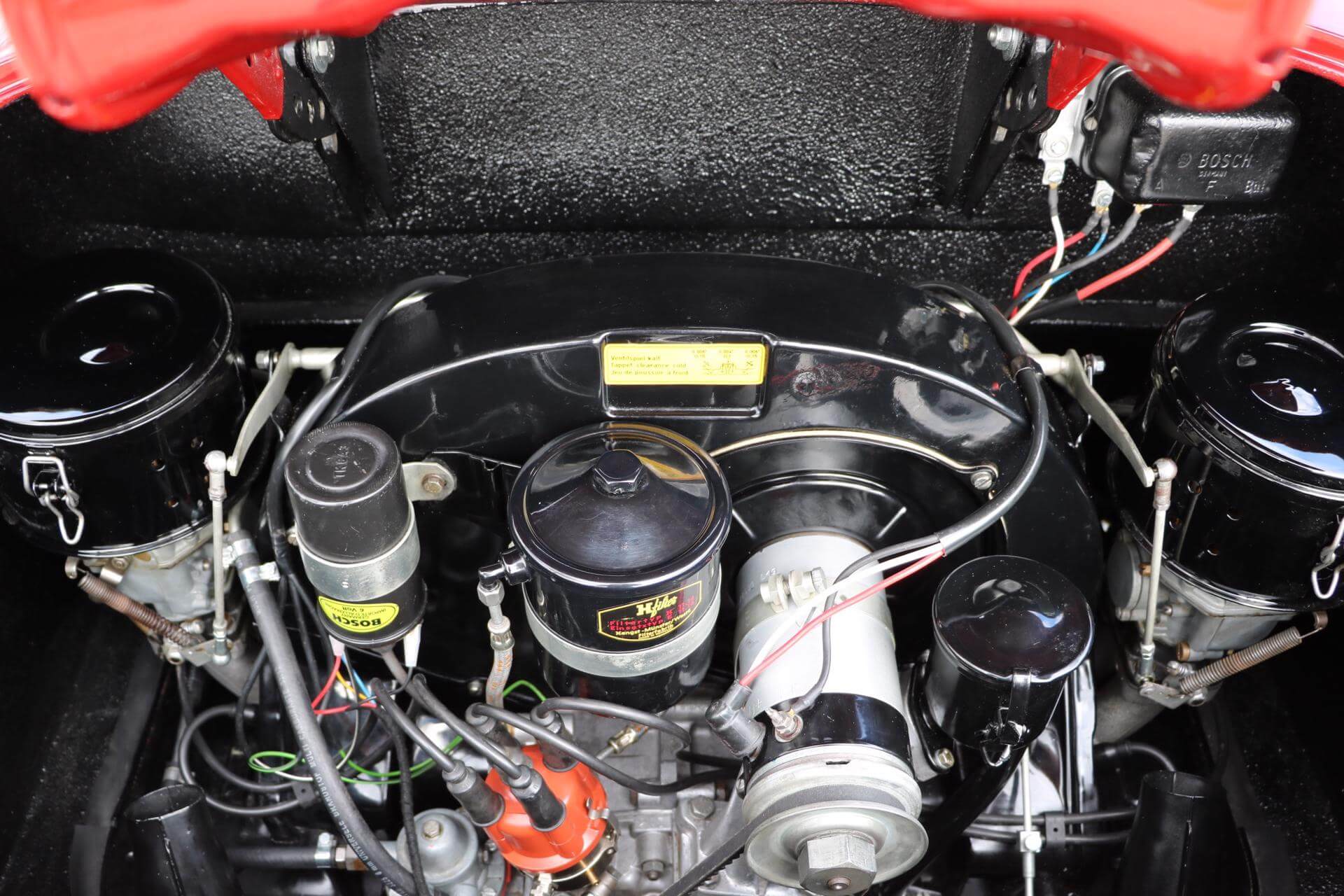 This Porsche 356 B T5 Roadster was finished on June 28, 1960. The car was delivered through Hoffman Motors Corporation in New York, USA. Little is known about the early history of the car. But after it’s complete nut and bold restoration that was finished in 2018 the car was registered in The Netherlands. The car was restored with eye for originality and so the car was painted in its original shade of “Rubinrot” over a “Hellgrau” interior. The Porsche Certificate of Authenticity confirms the original colors and numbers of the car. The car has a beautiful panel-fit. The engine has been completely rebuilt and power was improved to at least 75 horsepower. Since the restoration was finished, the car has driven not more than 900 shakedown kilometers to assure all issues that could occur after a complete restoration are finalized.