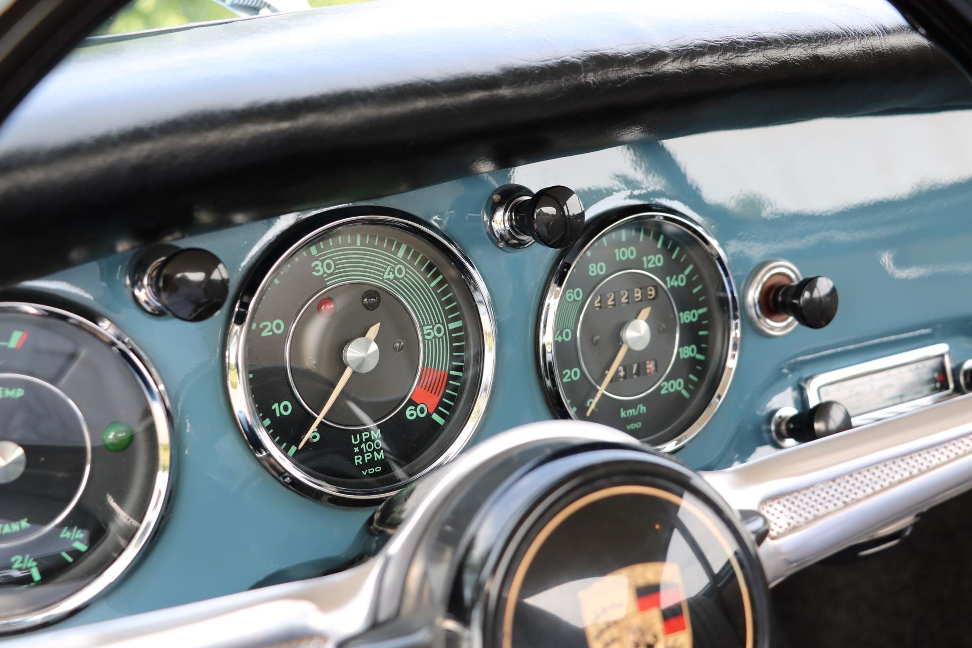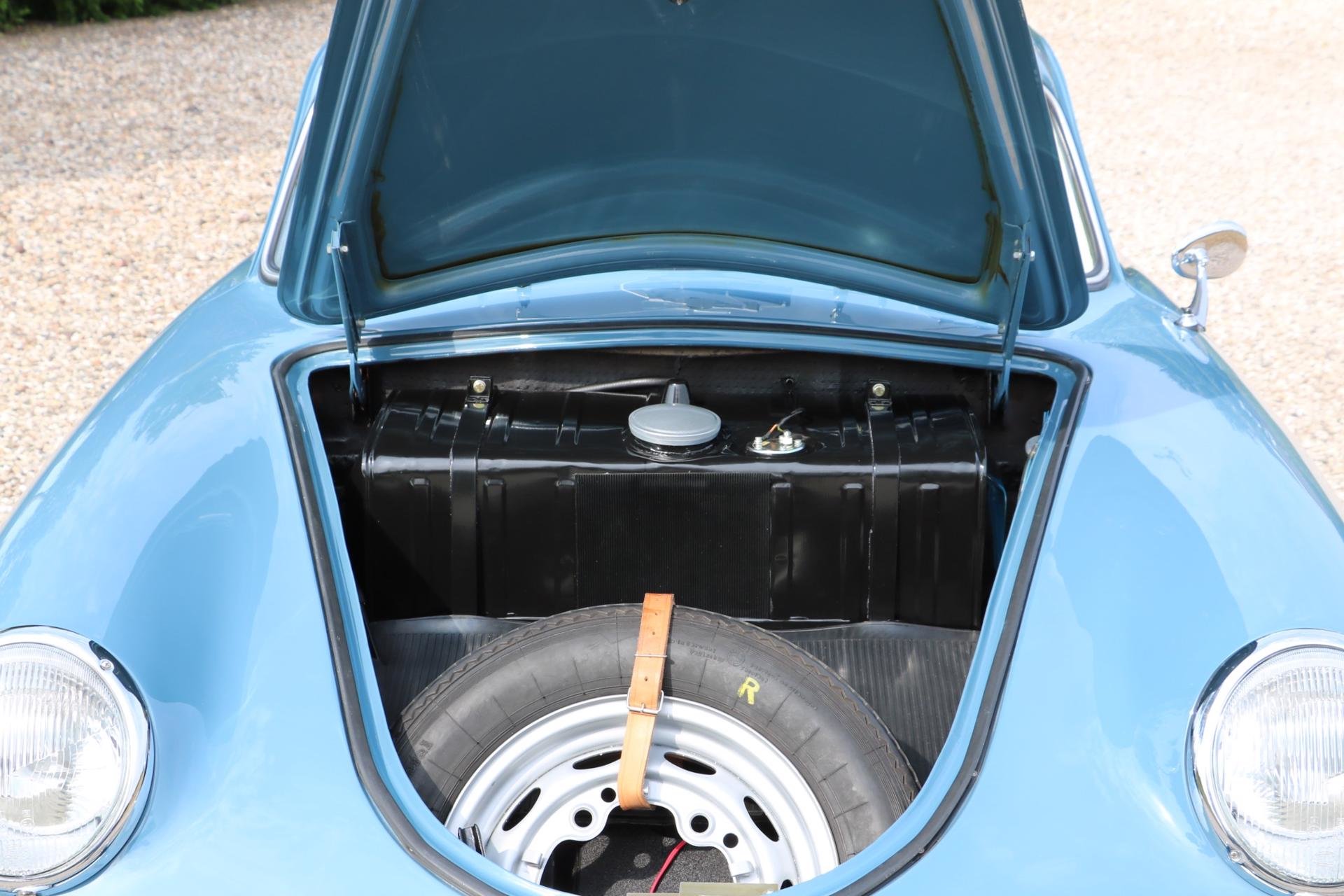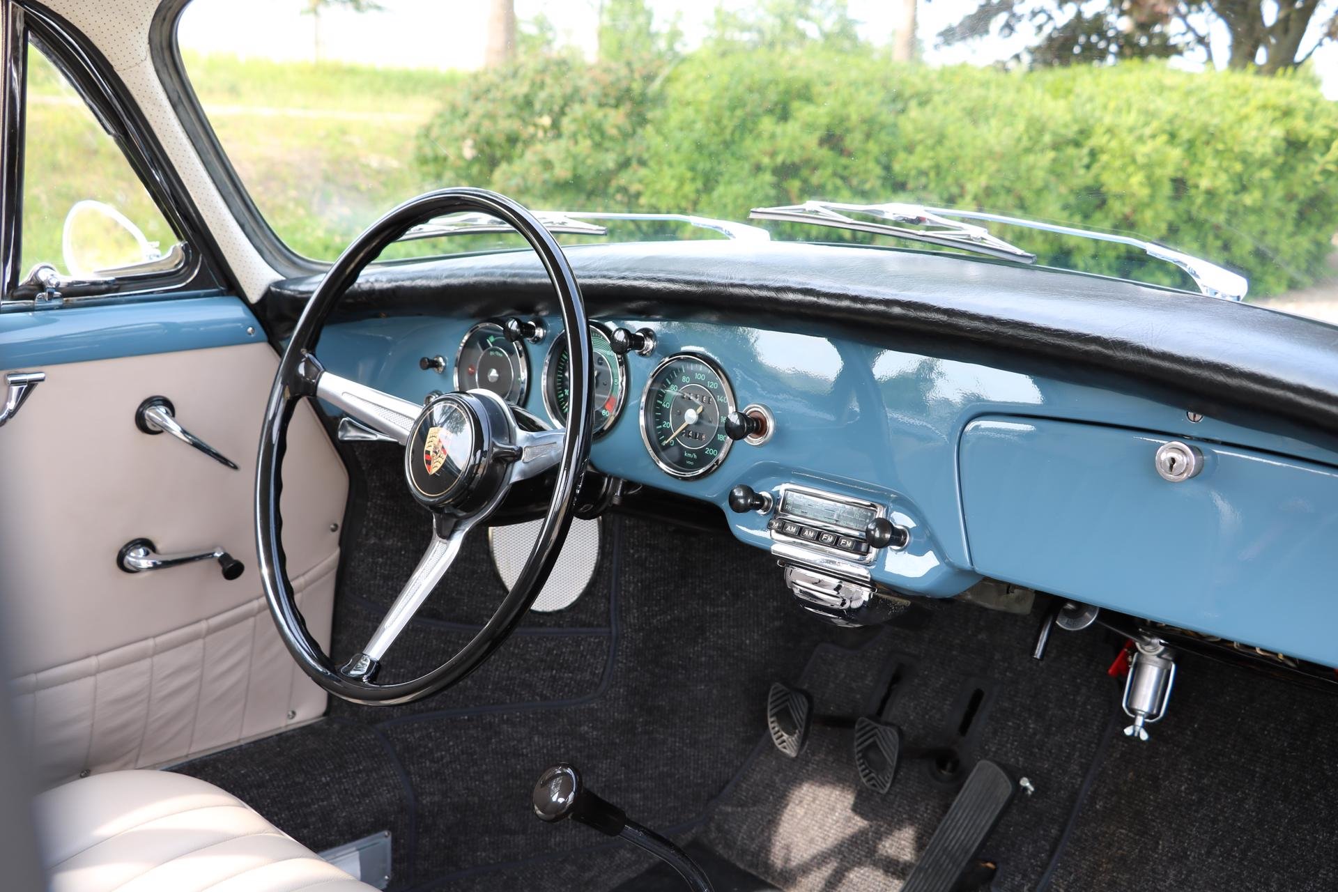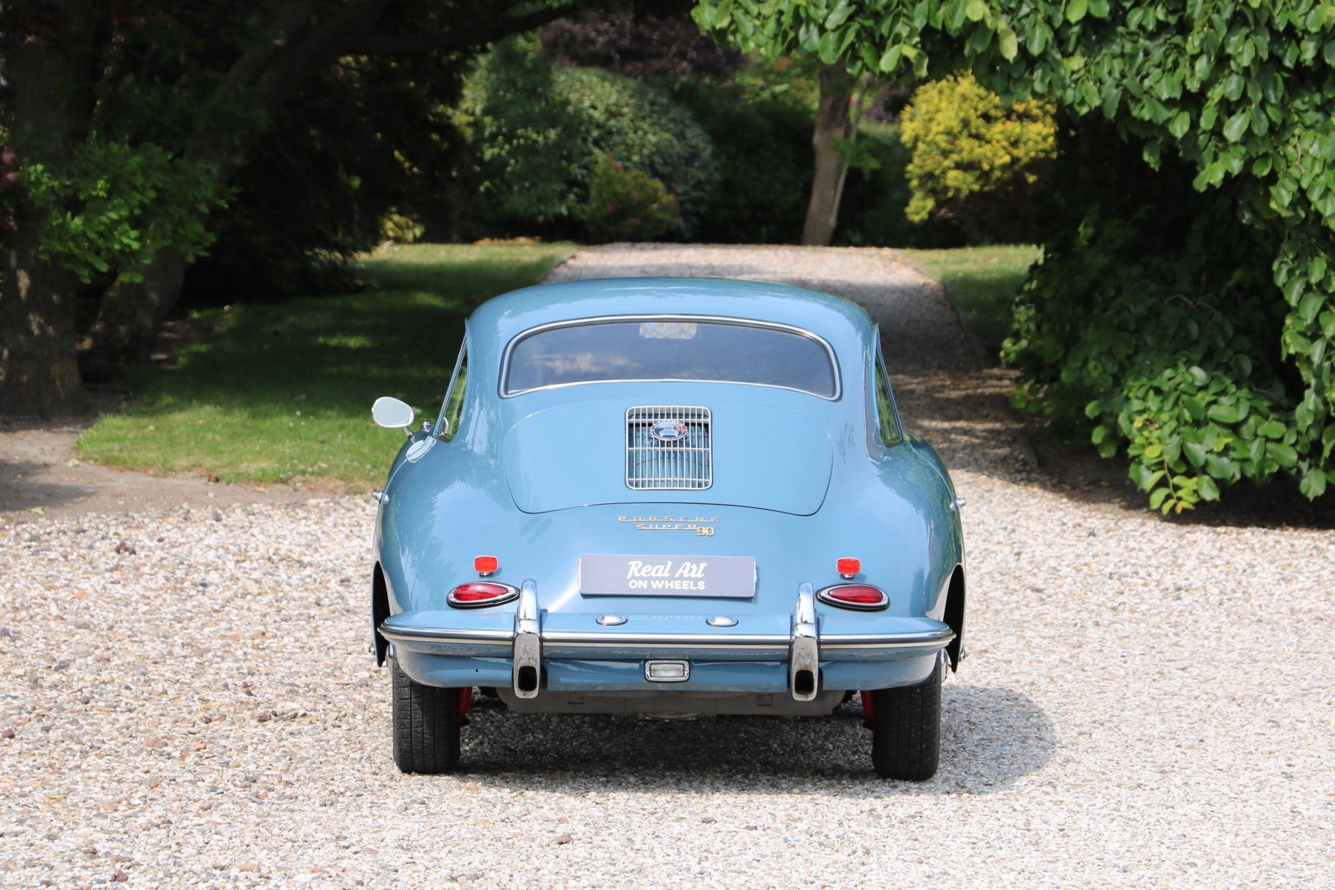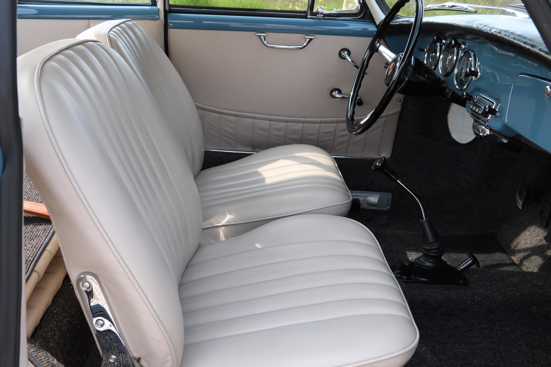 This is a very rare and late production Porsche 356 B T5 Coupe which was originally delivered in Europe. On September 19, 1961 the car was delivered through official Porsche Sales Agent Raffay & Co in Hamburg, Germany. The car was delivered in it’s current shade of Ätnablau. Little is known of its early history. This is an original Super 90 which means the strongest engine that was available at that moment. It delivers an output of 90 horsepower. The original matching numbers engine is still in the car and in immaculate condition. In the late 1990s the car was imported into The Netherlands and registered here. The car was always cherished by its former owners, including a complete engine rebuilt by marque specialist Kraan of Aalsmeer in The Netherlands. In the last 15 years we have owned over 30 different Porsches 356. This car is a very good and honest car, including lots of documentation of the last 20 years, but also an original servicebook and instruction manuals for both the Blaupunkt radio and the car. Also a toolset is present. All body panels are numbered correctly which proves the originality. A very good panelfit and both gearbox and engine feel very smooth. Originally the car was equipped with drum brakes on all wheels, but the car has been improved with disc brakes on the front wheels.