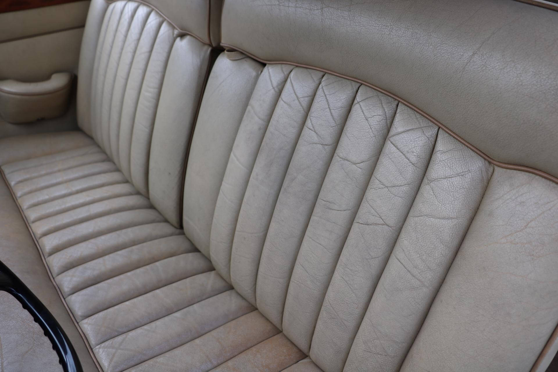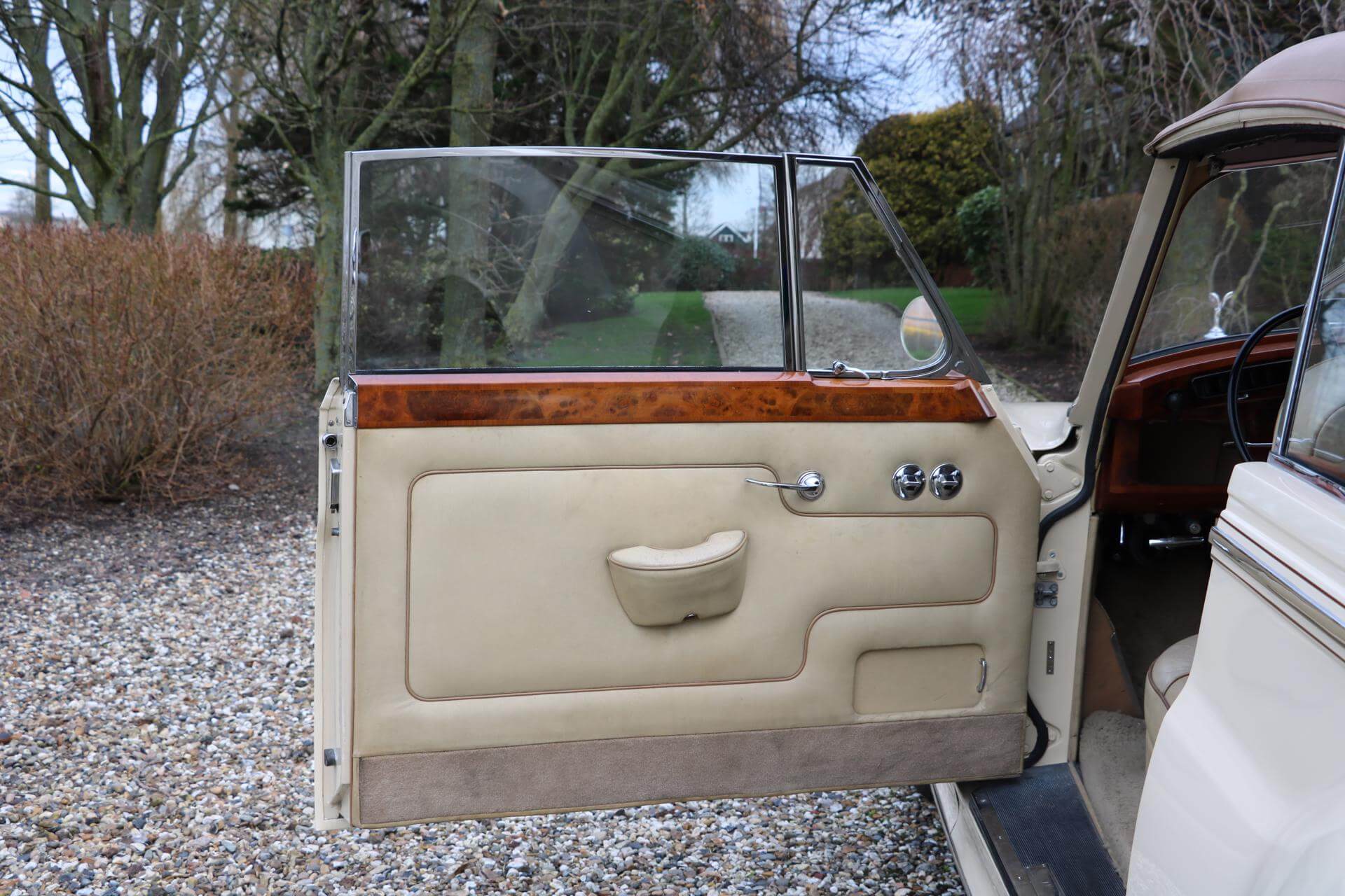 In 1961, this Rolls Royce Silver Cloud II DHC was ordered by Mr Thomas B. Kyle. According to the original chassis card details as received from the RREC this Rolls-Royce Silver Cloud II DHC was delivered on April 3, 1962. Coachbuilder H.J. Mulliner. The first owner, a Mr Thomas B. Kyle living in Paris brought the car with him to Florida. In the late 1990s the car was imported back to Europe and resided in the Cote d’Azur where we discovered the car recently. Probably early in its life the car’s front wings and headlights were updated to Silver Cloud III specification. The windscreens, convertible top, leather upholstery and carpets of the car are still the first original. Its matching numbers engine runs silent and has enough torque. Recently the complete brakes were overhauled. The car is in its original matching colour combination of Sand over a Tan leather upholstery.