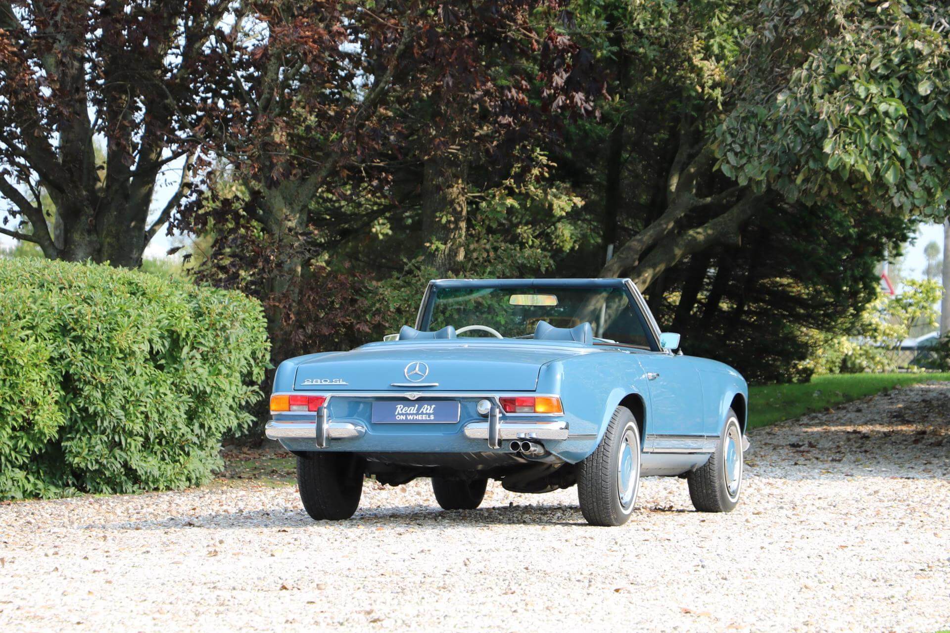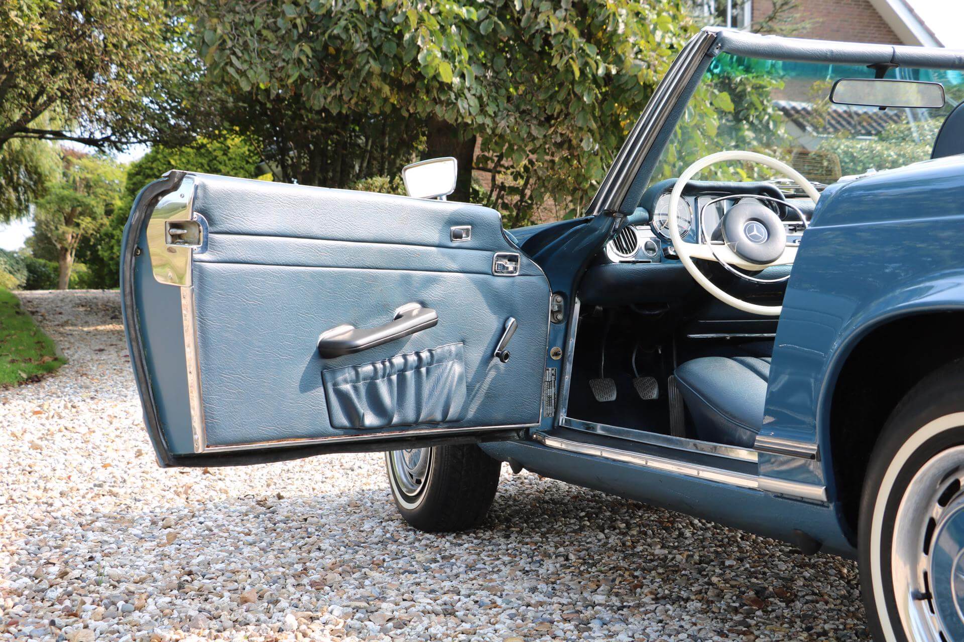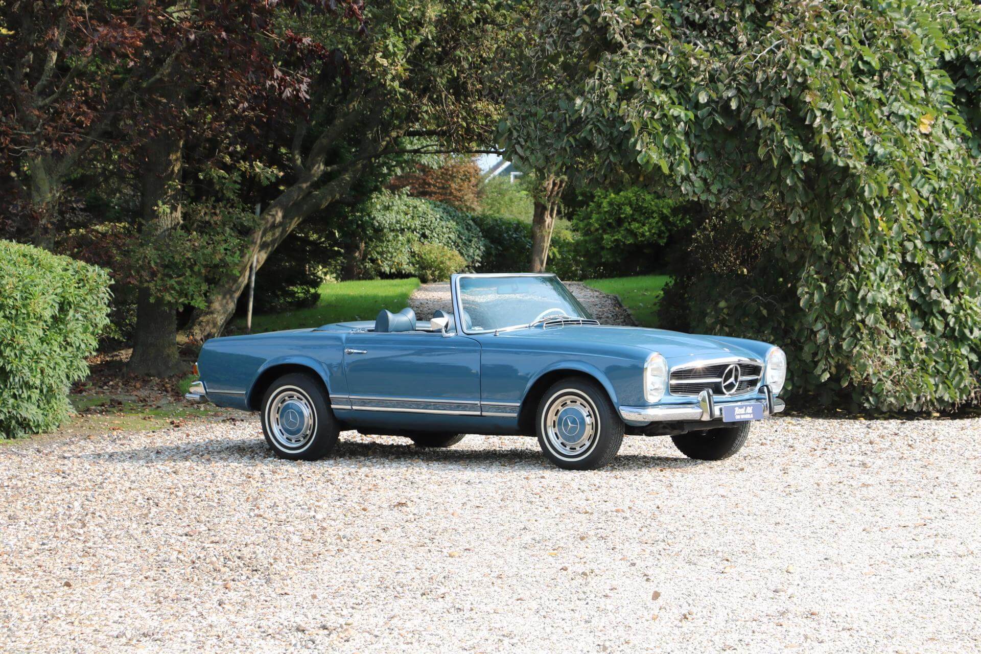 This Mercedes-Benz 280SL was originally delivered in a European country. Later in its life the car was exported to the USA, therefor the car still has its American bumpers and speedo in MP/H. These last memories can easily be changed depending a future owner wishes. In the last three years lots of work has been done, which is completely documented. Besides a full service, including all oils and filters the following has been renewed: