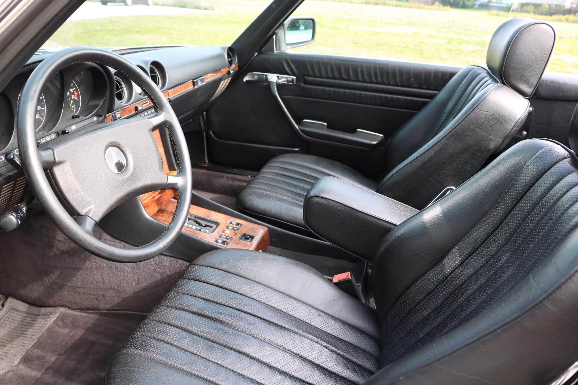 The car received a complete maintenance including new oils, filters for the engine, gearbox and differential and new sparkplugs were added. A new soft top, new rear muffler, new ECU cruise control, new Bosch battery, new high quality radio speakers, new viscose clutch radiator fan and a paint detail were also done in 2017. Mercedes-Benz dealer Victoria in Rotterdam, the Netherlands installed a new heating and cooling system. This is known as a weak point for the R107 model and very expensive and complicated to repair. New Michelin tires, with very limited mileage, provide a steady ride.