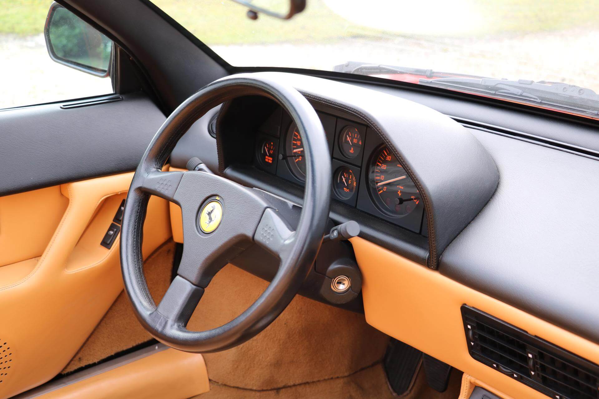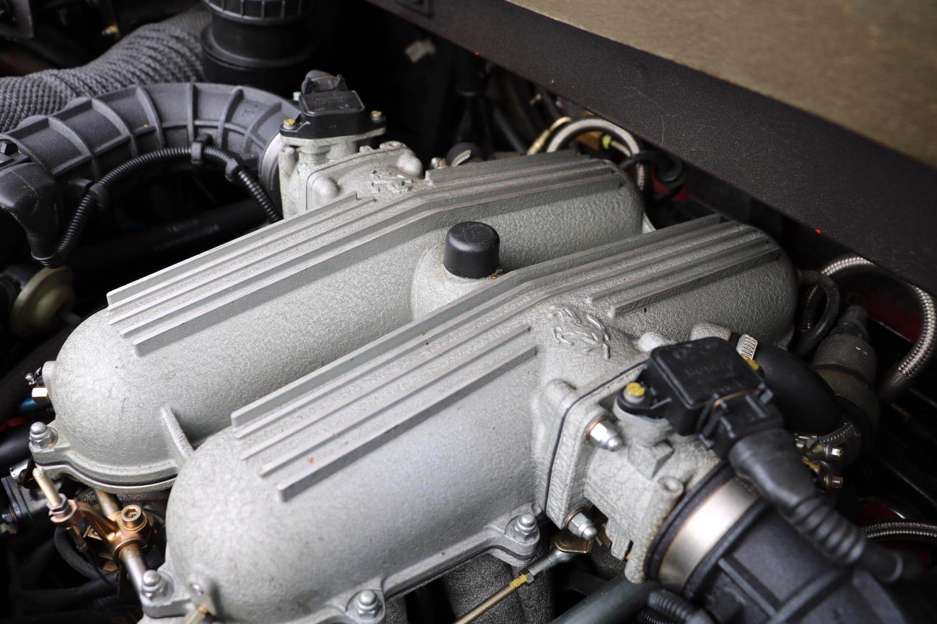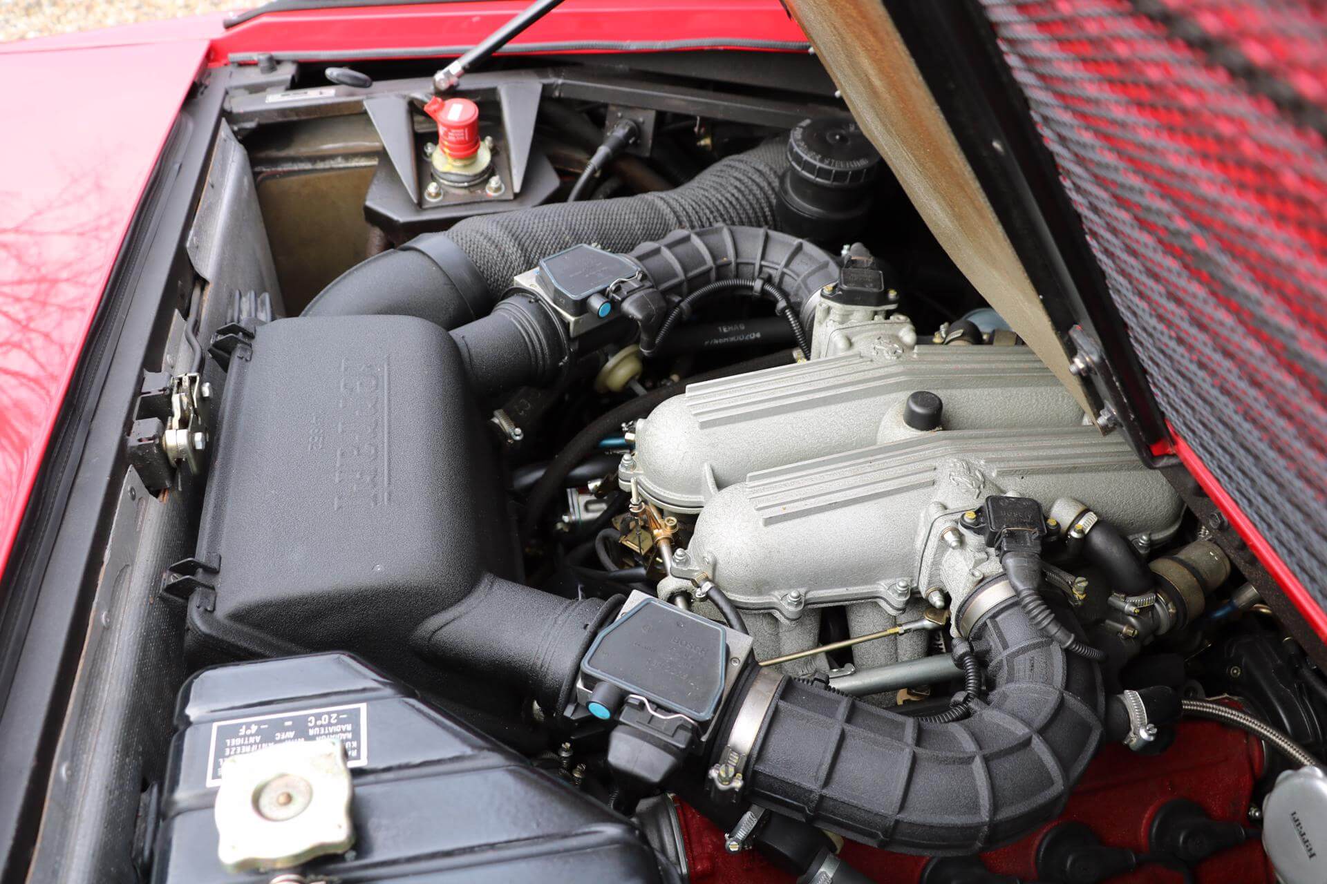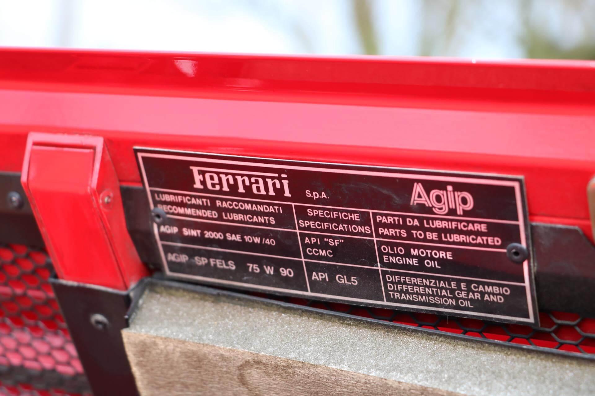 The ‘t’ called attention to the car’s new engine/transmission layout: the previously transverse engine mounted longitudinally while the gearbox remained transverse, thus forming a ‘t’. The ‘t’ suffix was also homage to the first use of a transverse transmission by Ferrari in the highly successful Ferrari 312T, driven by F1 World Champion Niki Lauda. By adopting this layout, a longer engine could be mounted lower in the chassis, improving handling dramatically. The ‘t’ configuration was used by Ferrari’s Formula One cars of the 1980s, and would be the standard for the marque’s future mid-engined V8 cars, beginning with the 348, introduced later in the year. The engine was up to 3.4 L (3.405 cc) and 300 hp. Engine lubrication upgraded to a dry-sump system.