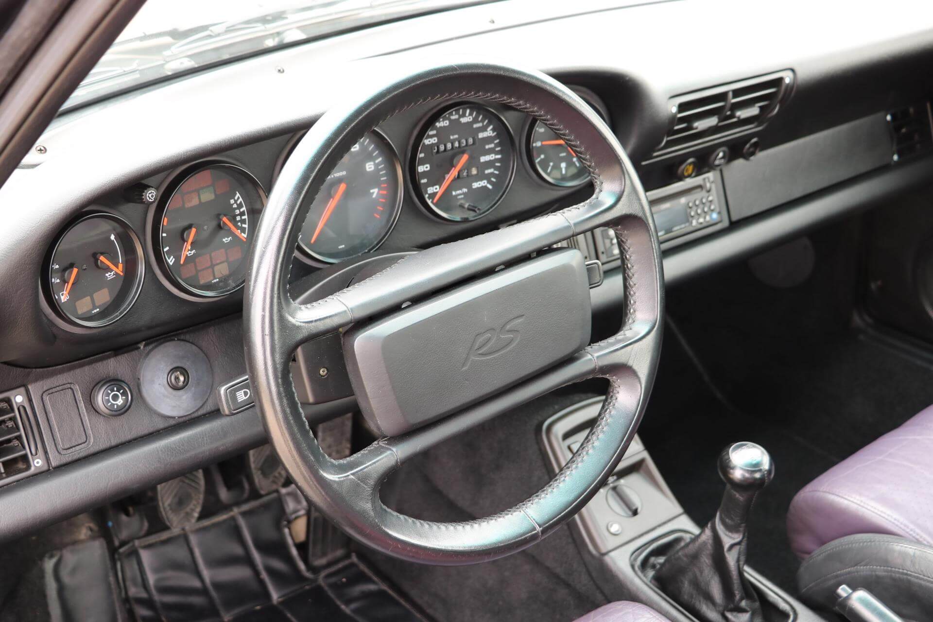 Following the Porsche Certificate of Authenticity this matching-numbers Porsche 964 RS was originally delivered to Germany on January 24, 1992. In 1996 the car was registered for continuation of the warranty. Around 2003 the car was registered in Sweden. After a few years the car was exported to the United Kingdom – where the car was discovered and immediately bought by its last owner, a very good friend of our company. Being part of an impressive Porsche collection the car was sparingly driven and precisely maintained. The car is in highly original condition and accident-free. The car is complete with all keys, books and a full binder with all service records. The car is equipped with a Matter rollcage in 1999.