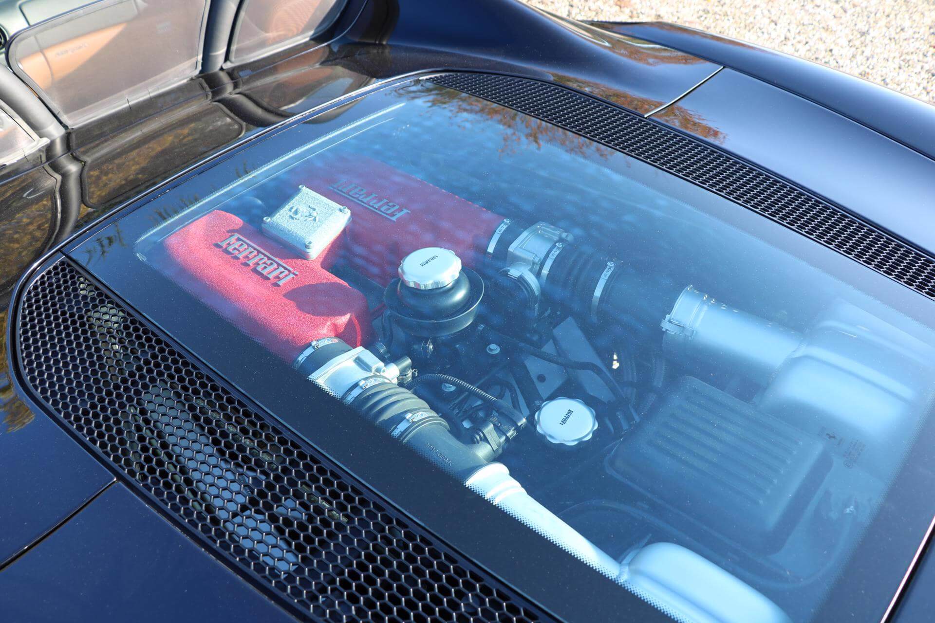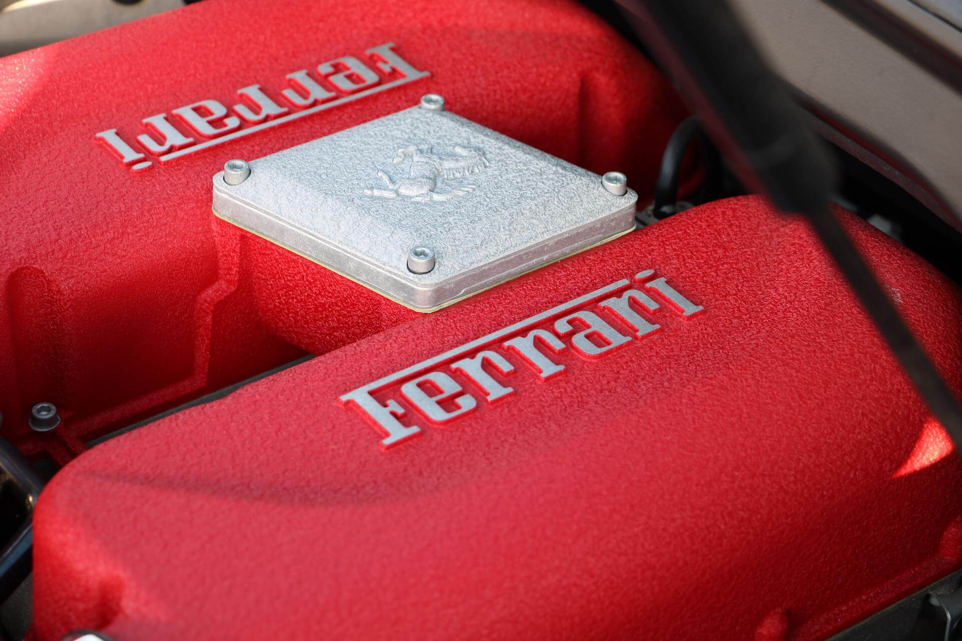 As with the Modena version, its 3.6 litre V8 with 400 horsepower is on display under a glass hood. The engine — confined in space by the convertible’s top’s storage area — acquires additional air supply through especially large side grills. The intake manifolds were moved toward the center of the engine between the air supply conduits in the Spider engine compartment, as opposed to lying apart as with the Modena. Despite the car’s mid-mounted V8 engine, the electrically operated top is able to stow into the compartment when not in use. The convertible top was available in black, blue, grey and beige colors. The transformation from a closed top to an open-air convertible is a two-stage folding-action that has been dubbed “a stunning 20 second mechanical symphony”. The interior of the Spider is identical to that of the coupe.