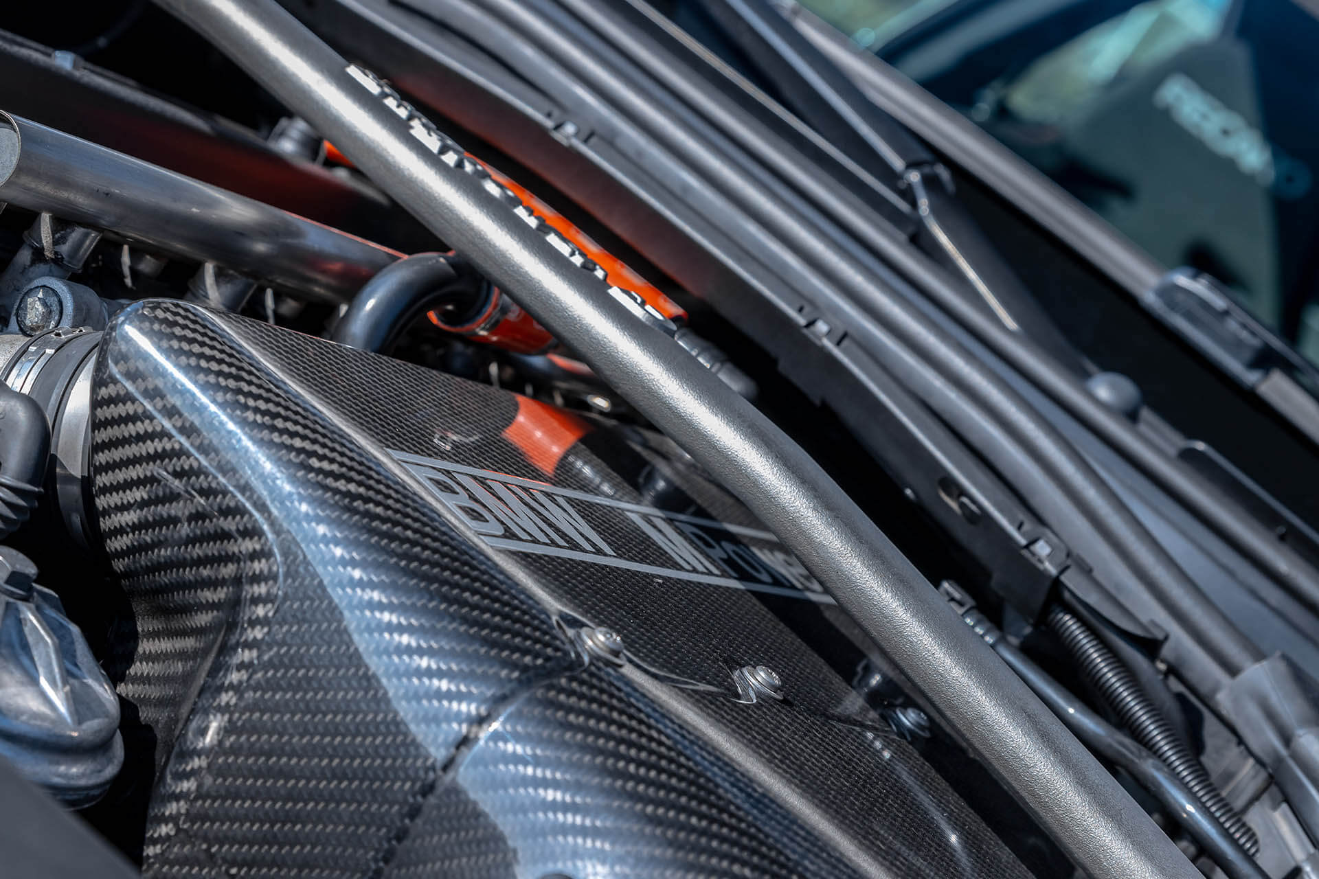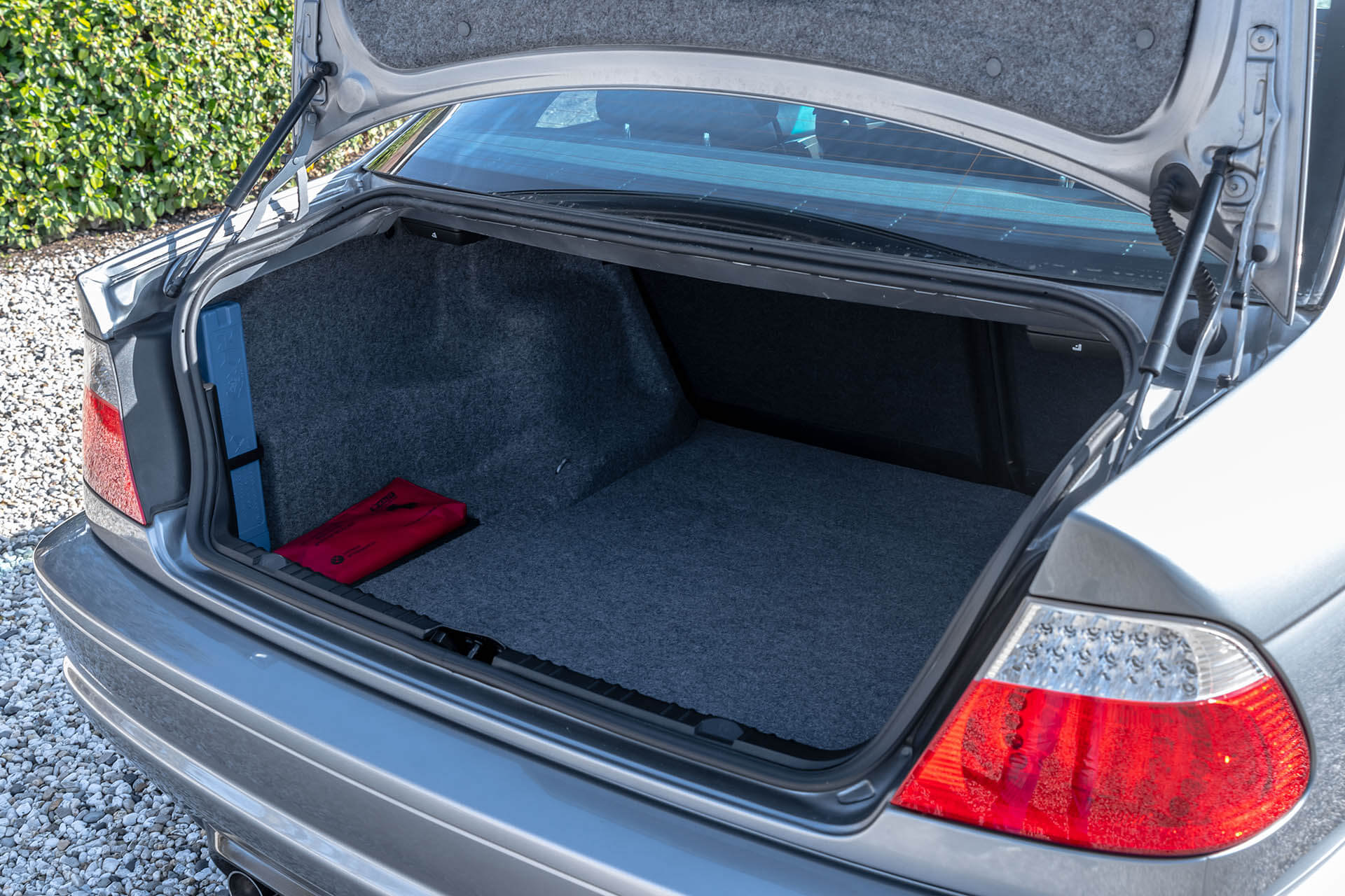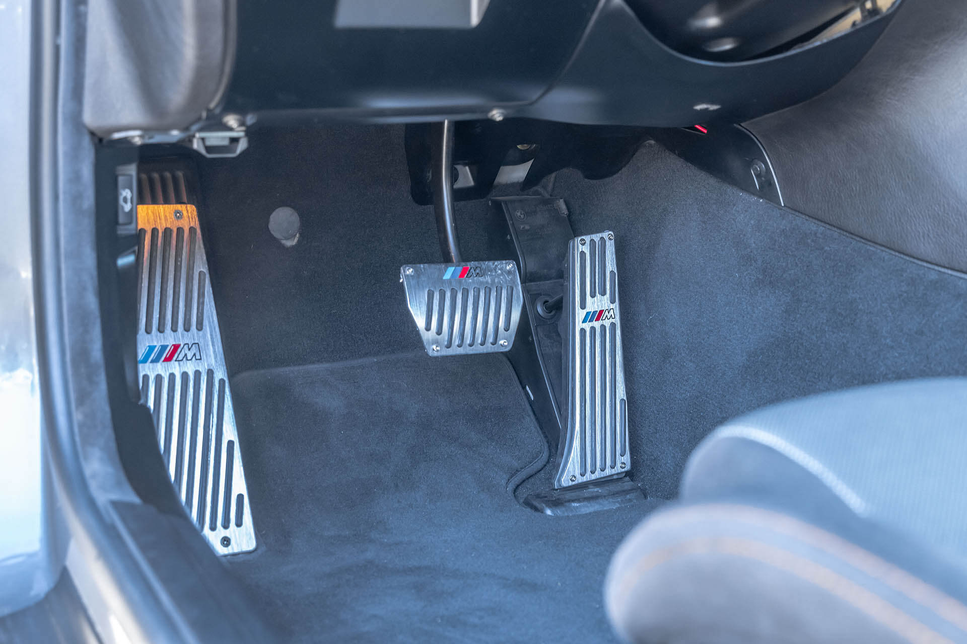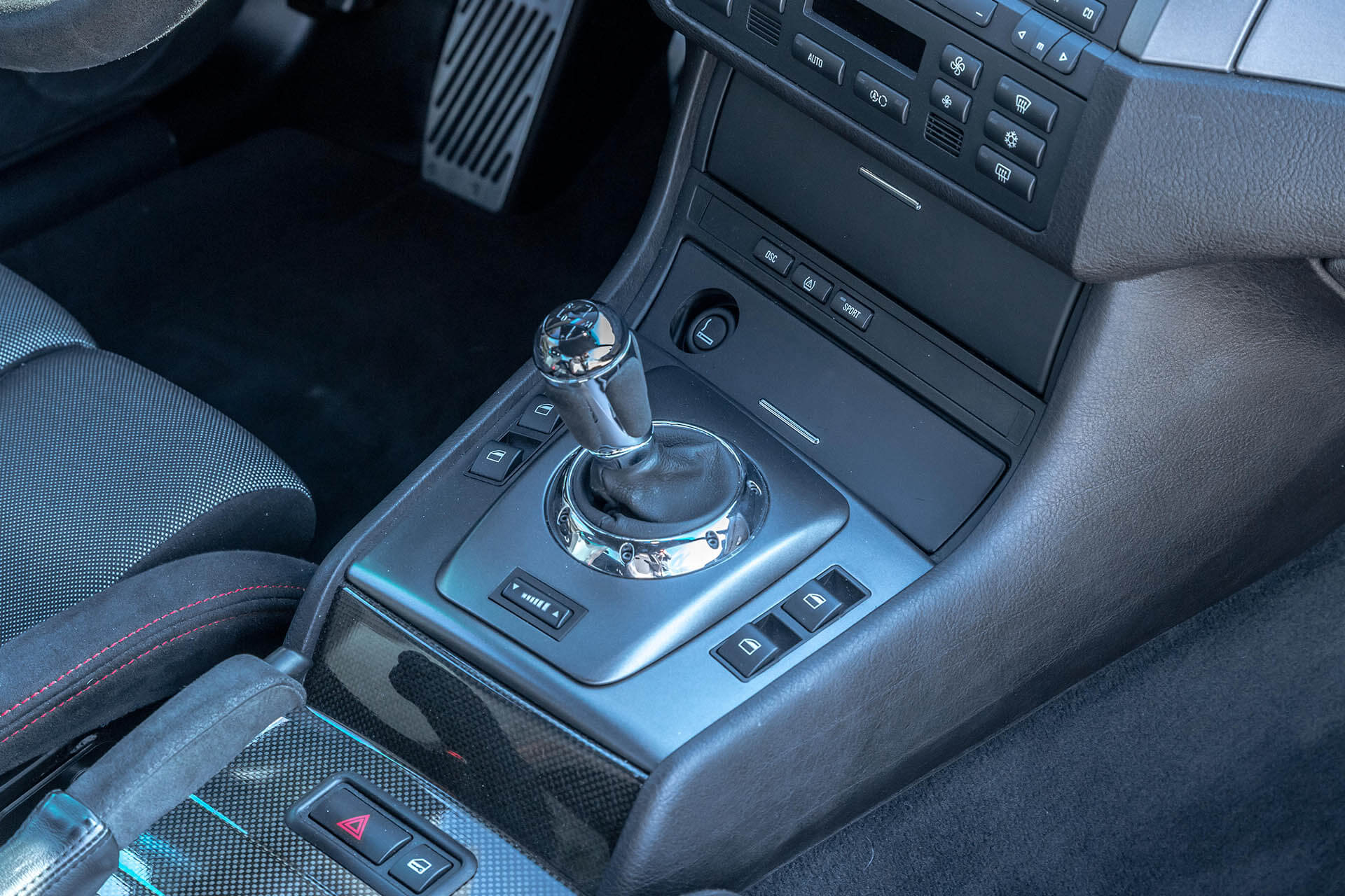 As its name suggest, an emphasis was put on reducing weight. The BMW M3 CSL has a curb weight of 1.385 kg, 110 kg lighter than the regular M3. The CSL features many weight saving technologies taken from BMW’s Formula One racing applications. A large production of the M3s sound insulation has been removed, aong with electric seats and navigation systems. The CSL’s unique body pieces are all crafted from carbon fibre reinforced polymer. Glass-reinforced plastics are used throughout structural points in the car. The standard rear windows was replaced with one made from thinner glass. Although the CSL loses a considerable amount of curb weight from its original version, the focus was put on strategically reducing or moving the weight in the car rather than the raw amount of weight that could be lost. This is to retain the ideal 50:50 weight distribution characteristics the E46 has. For example, the roof is constructed from carbon fibre reinforced plastic. While this only reduces the curb weight of the car by 7 kg, it lowers the centre of gravity of the car and decreases body flex.