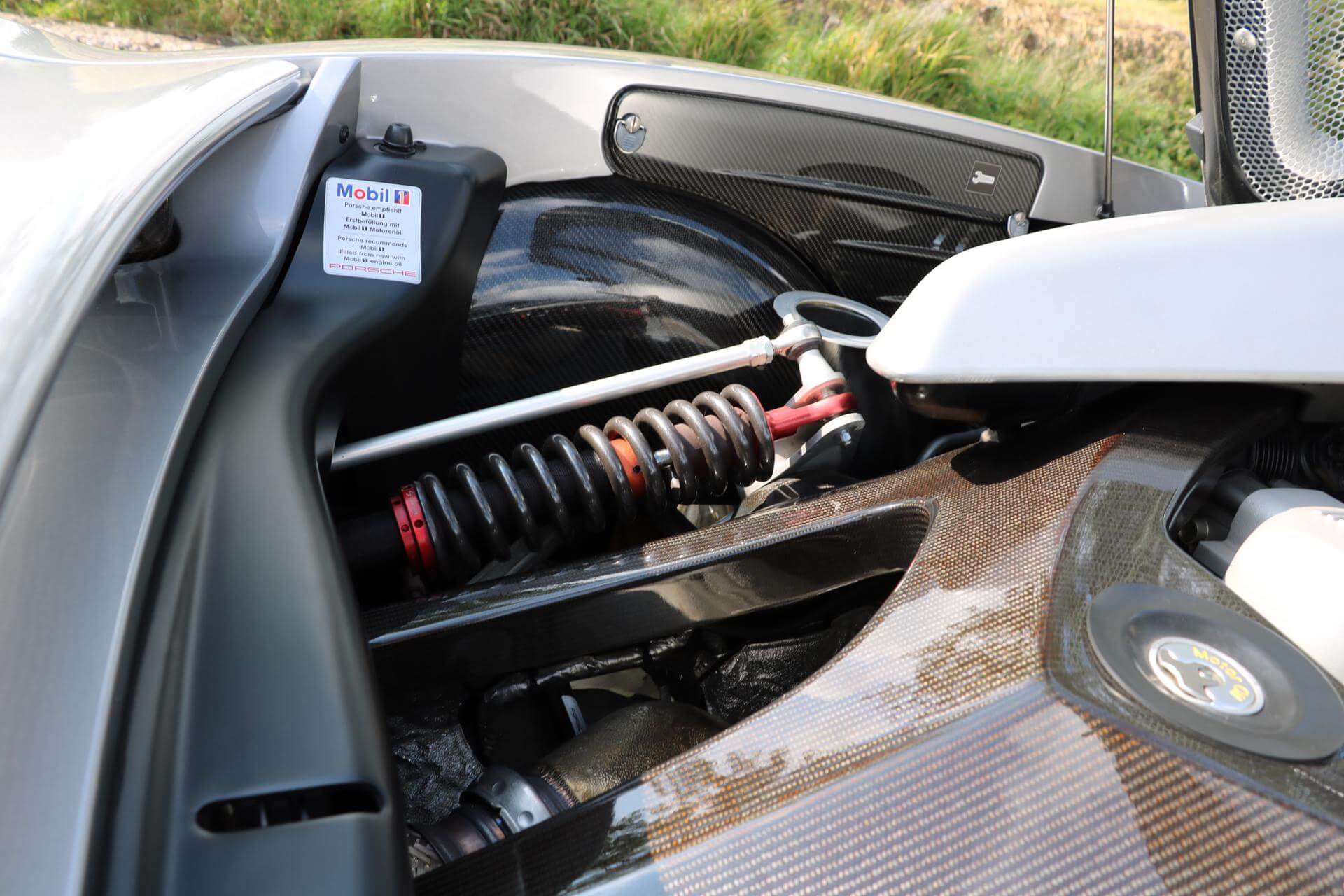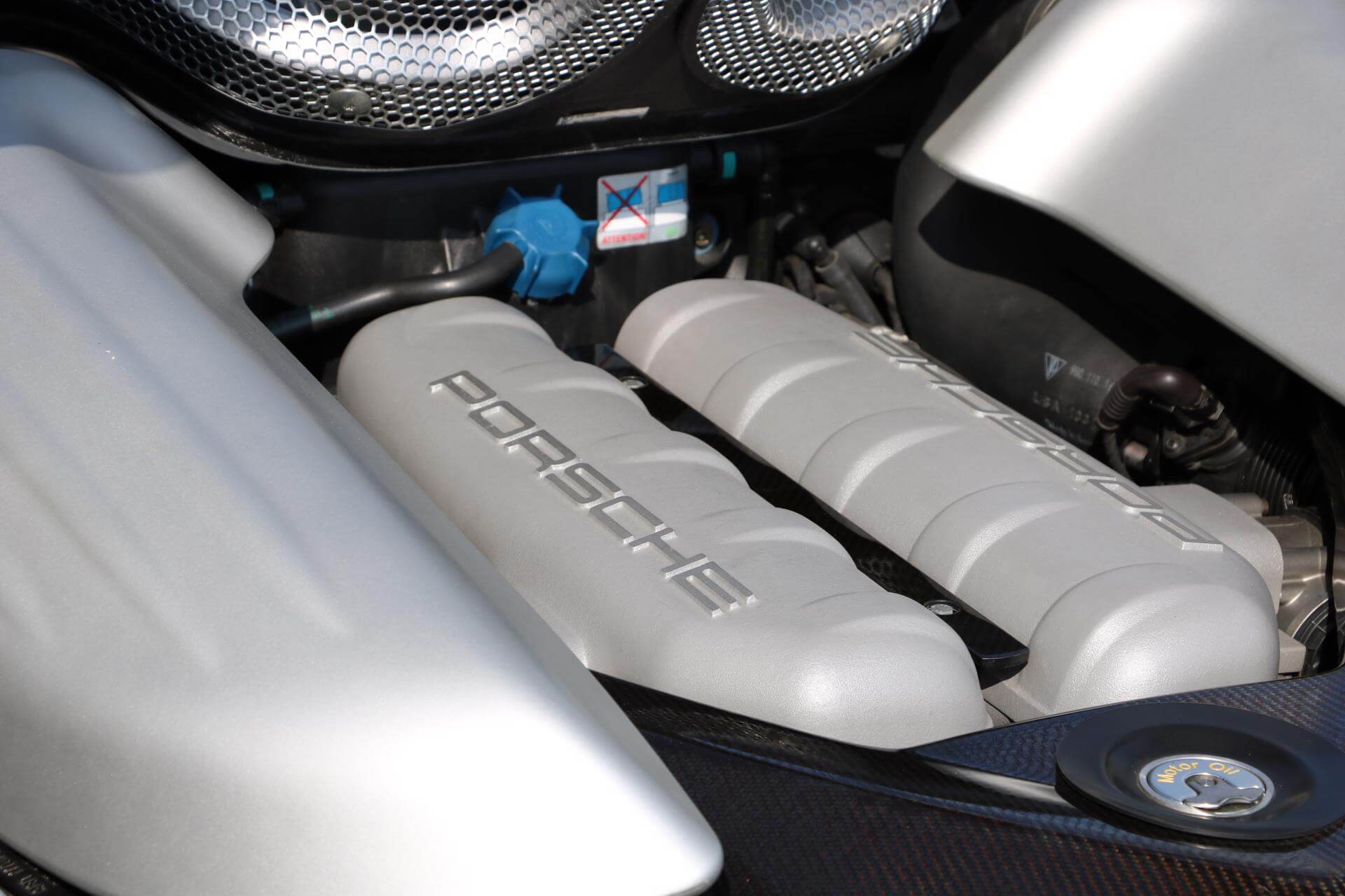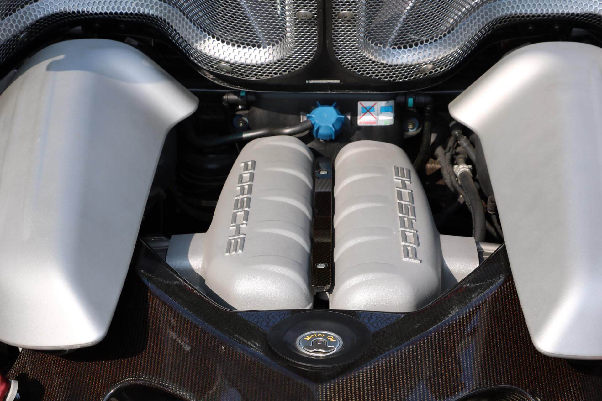 Among the car’s unique features are its 5.7-liter, 605-horsepower V10 engine; its monocoque chassis with engine and transmission mounts made of carbon-reinforced plastic; and the first use of a ceramic composite clutch in a production car. Its aerodynamic and race-bred suspension package provides safe and stable travel at speeds of up to 330 km/h, and the Carrera GT features a lot of lightweight materials, such as magnesium for the car’s huge wheels and special sport seats.