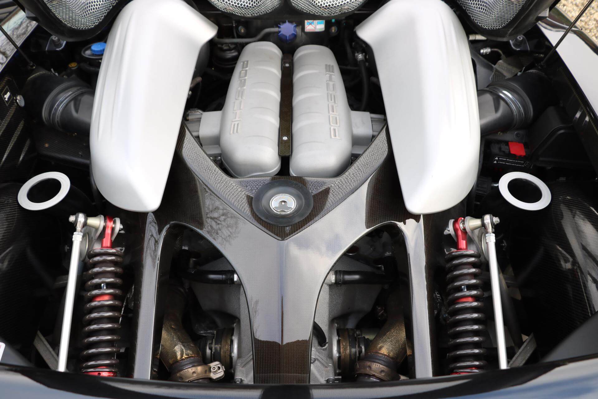 Among the car’s unique features are its 5.7-liter, 605-horsepower V10 engine; its monocoque chassis with engine and transmission mounts made of carbon-reinforced plastic; and the first use of a ceramic composite clutch in a production car. Its aerodynamic and race-bred suspension package provides safe and stable travel at speeds of up to 330 km/h, and the Carrera GT features a lot of lightweight materials, such as magnesium for the car’s huge wheels and special sport seats.