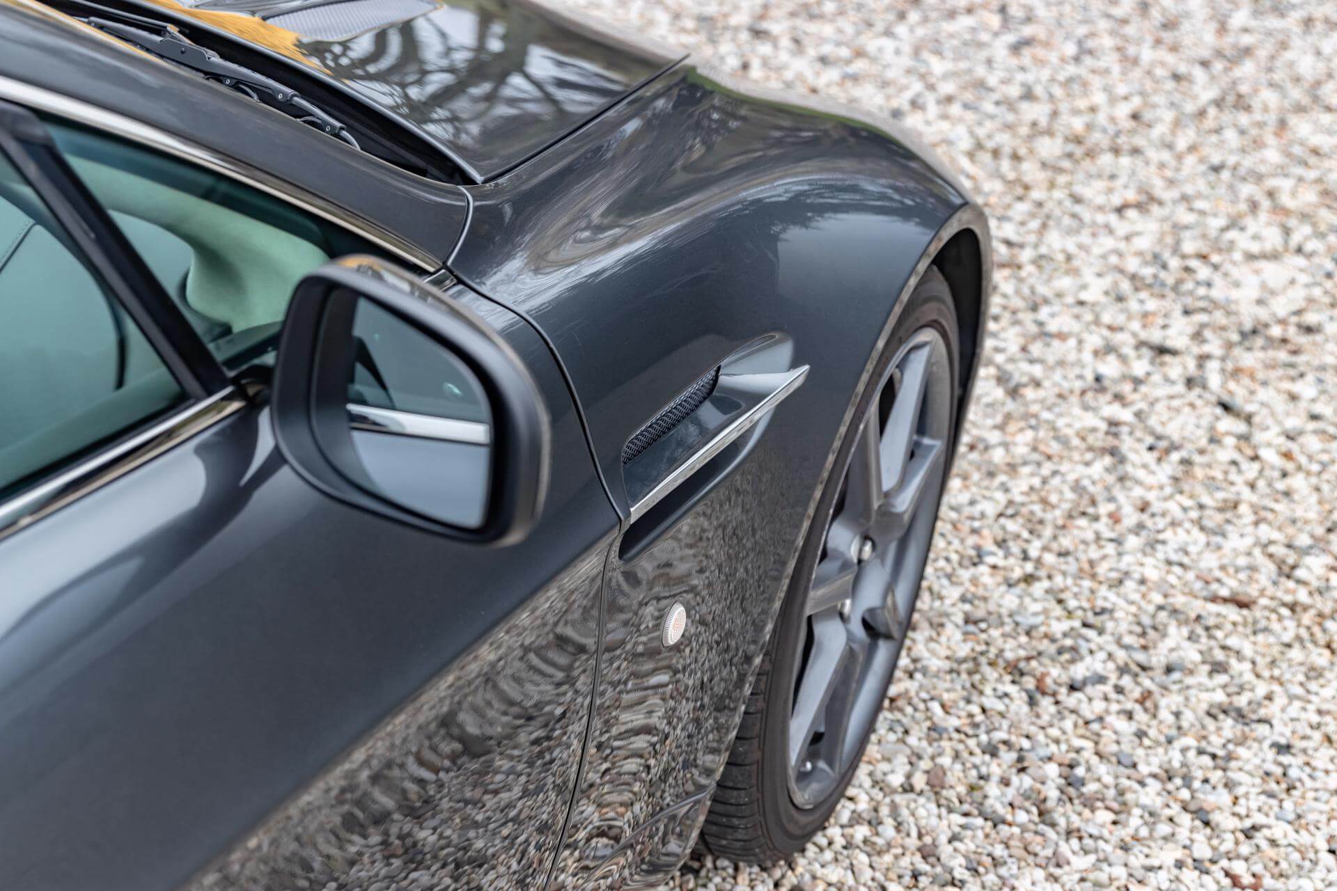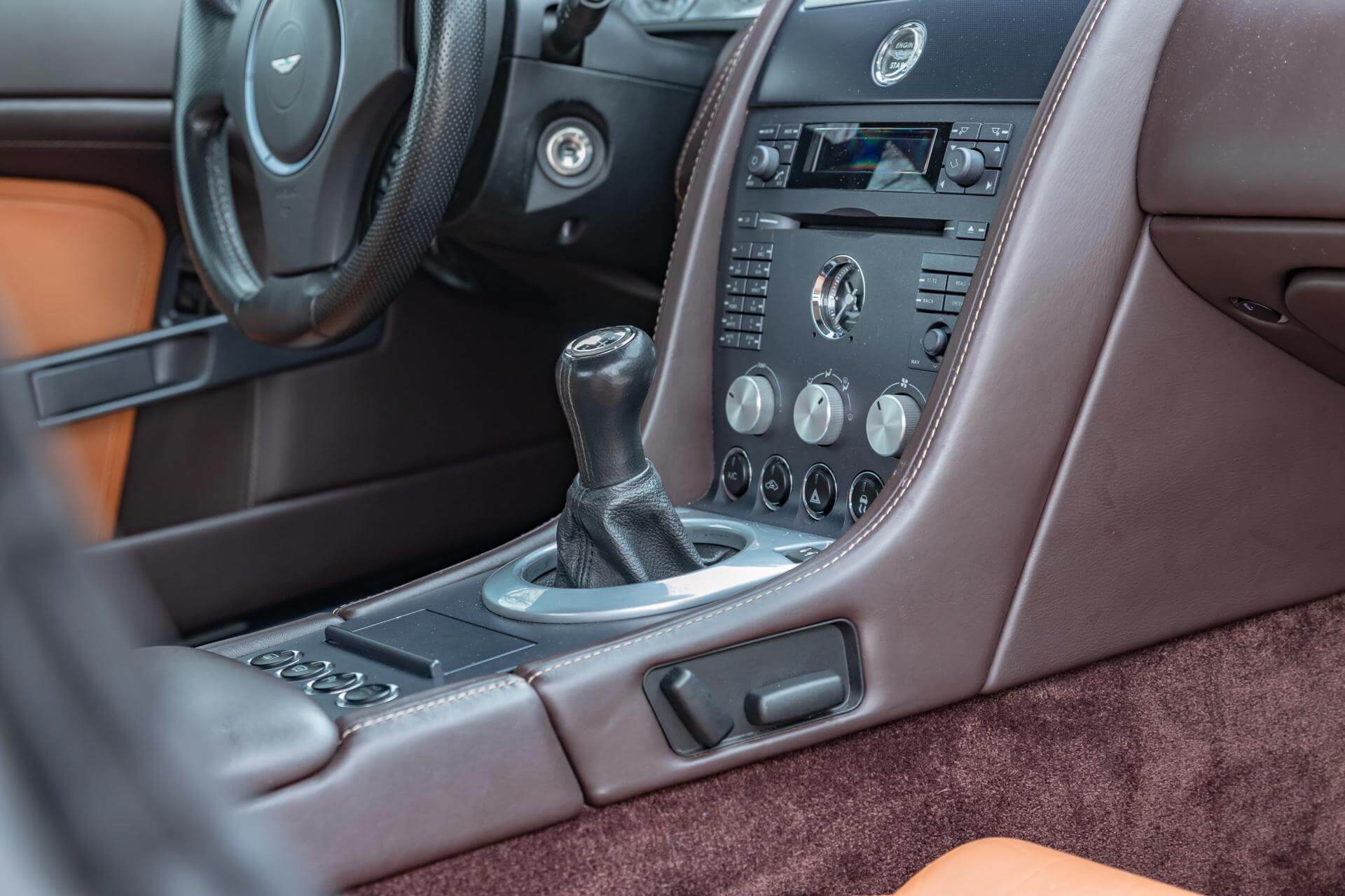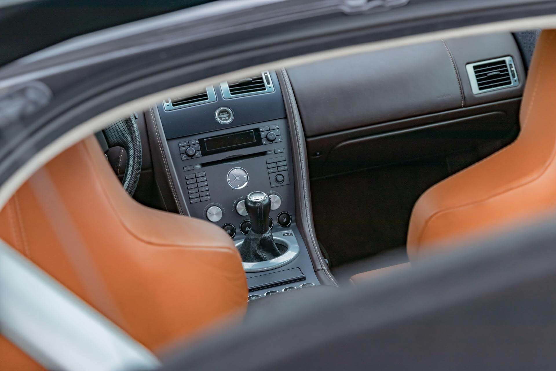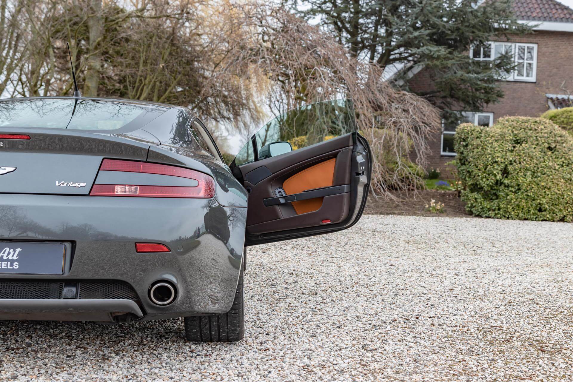 The Aston Martin V8 is tastefully combined in Meteorite Silver Metallic over a Bitter Chocolate and Kestrel Tan Leather interior.
