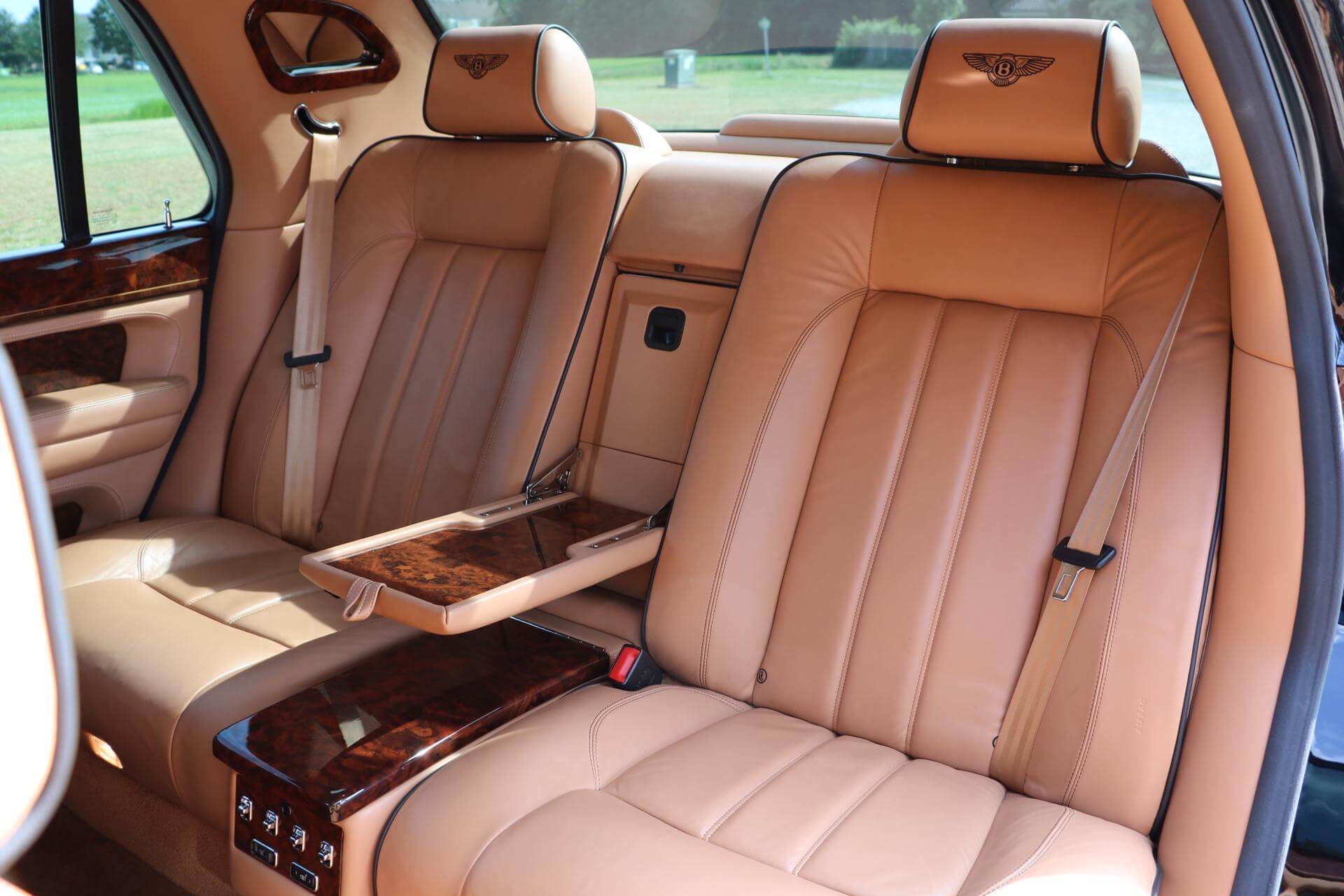 The Beluga paint matches the Autumn leather interior very well. Desirable options include the Flying “B” Radiator Mascot. Burr Walnut with Contemporary Corss-Banding & Inlay to Fascia, Lambswool Rugs (in addition to carpet overmats), Contrast stitching in Beluga, Arnage RL Entertainment, Mulliner Content.