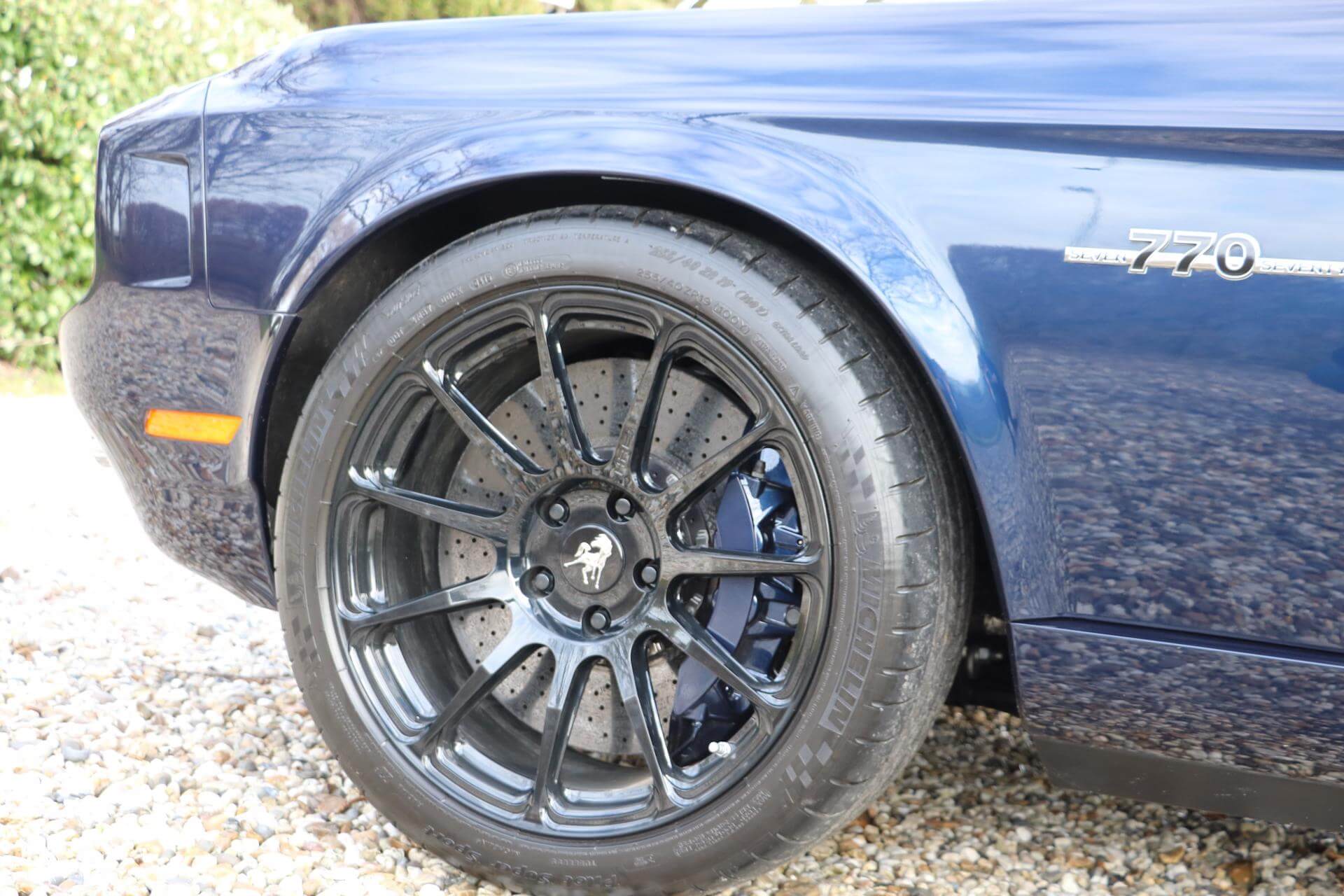 In 2015 this car was ordered directly at EQUUS by a respected European client of us. He took delivery of the car in early 2016 and had the car road registered in Europe on 11 May 2016. We assume this is the only Equus Bass770 registered in Europe today! This example is number 5 of 15 examples produced. And exactly how it left the factory. Tastefully combined with a custom color Navy Blue over a black leather interior. Specialized specification for the car are the air intake cover, colored intercooler, engine cover with plate, additional driving lamps, interior accents in chrome, color painted calipers, colored paint wheel finishes, front and rear masks and chrome window trim. With an actual base price of 534,000 USD and the selected options, the actual list price of this car is 556,500 USD. We are proud to offer this car, EU taxes paid, for a fraction of this price.