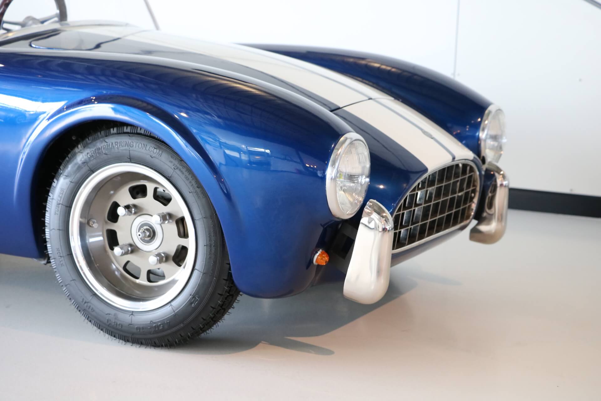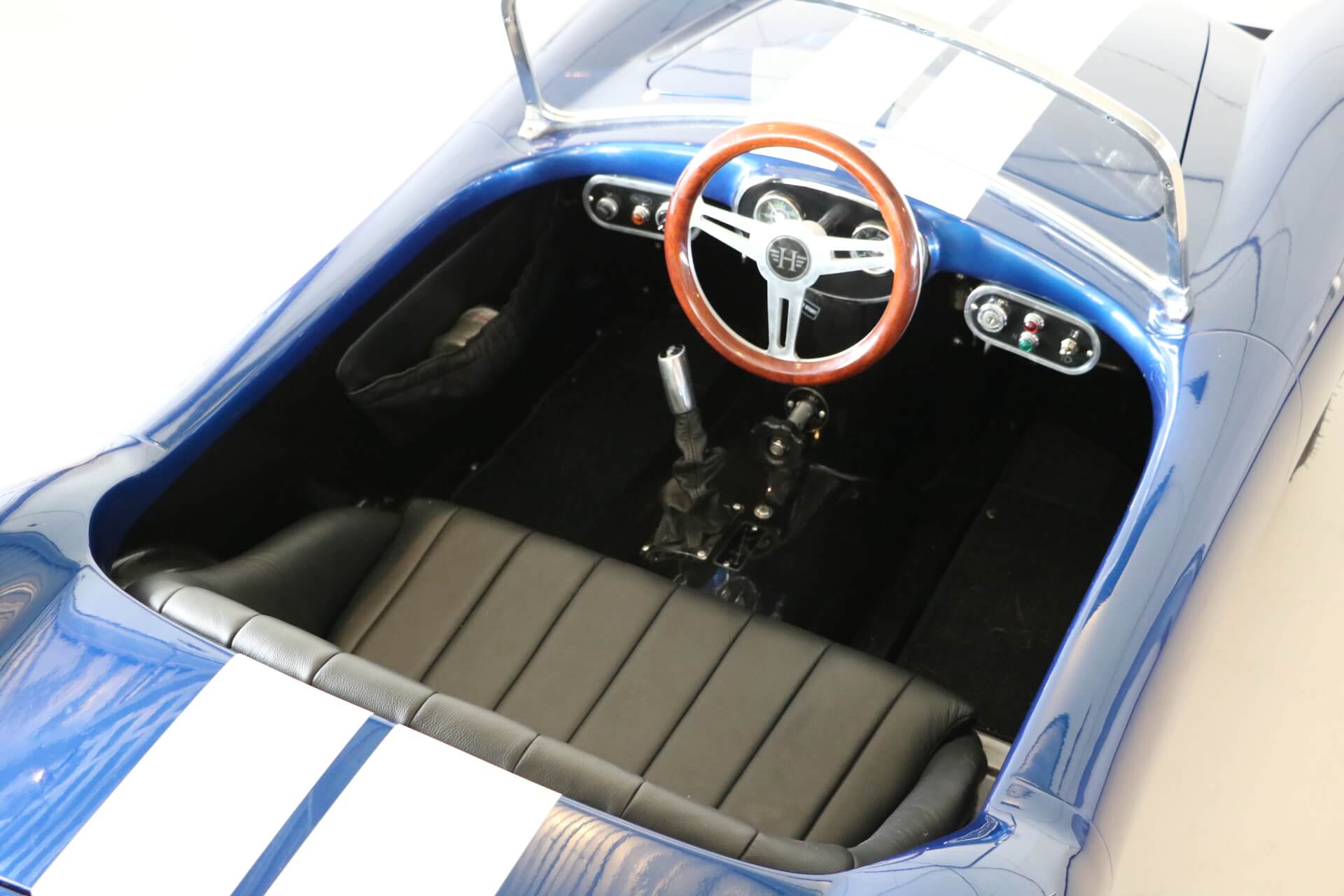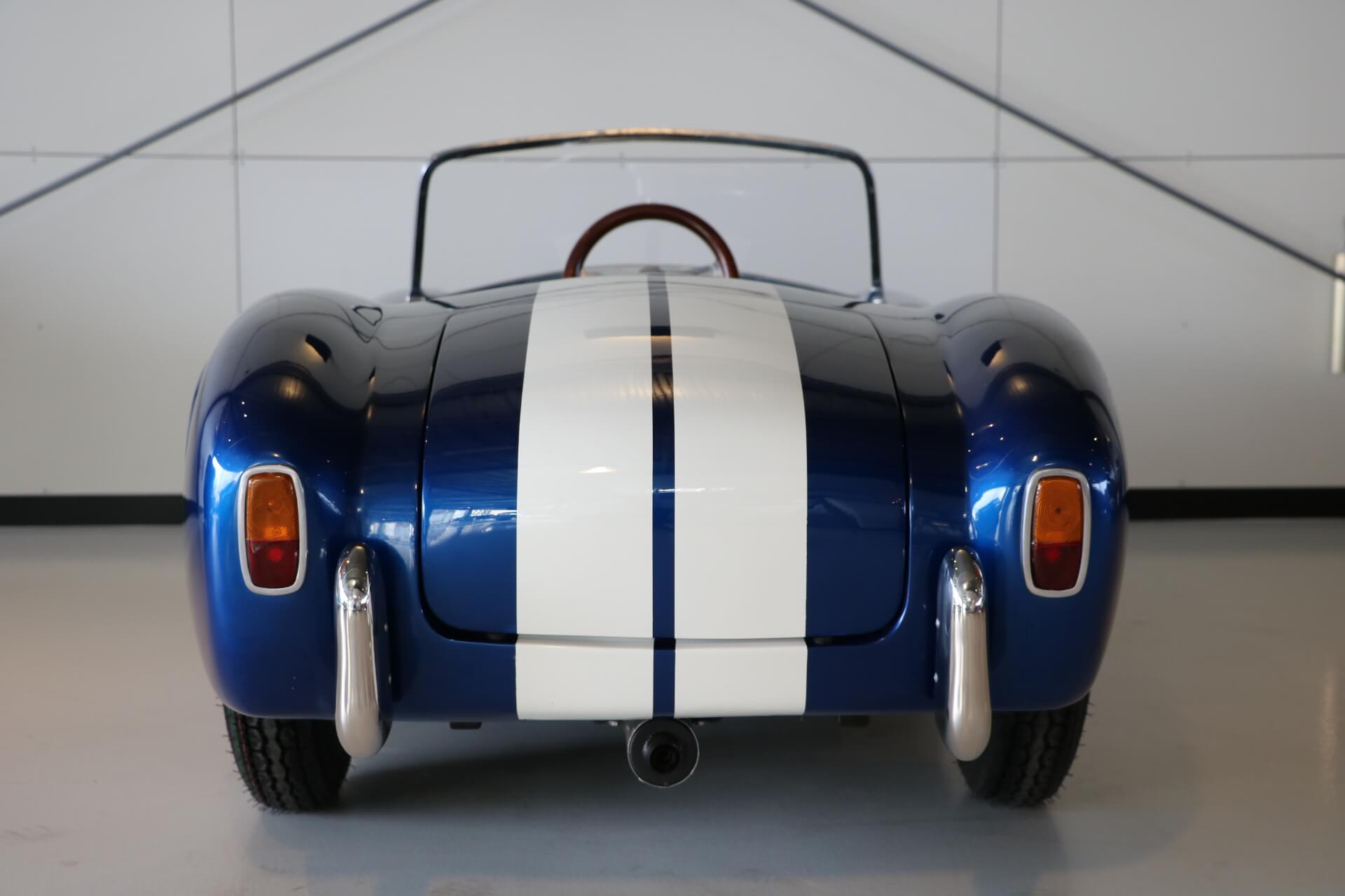 Inspired by the famous AC Cobra’s, Real Art on Wheels has several trims available in the current collection. Next to this blue with white stripe Cobra we also have a silver with black stripe available. This Junior Car is built at a very high standard and is in pristine condition.