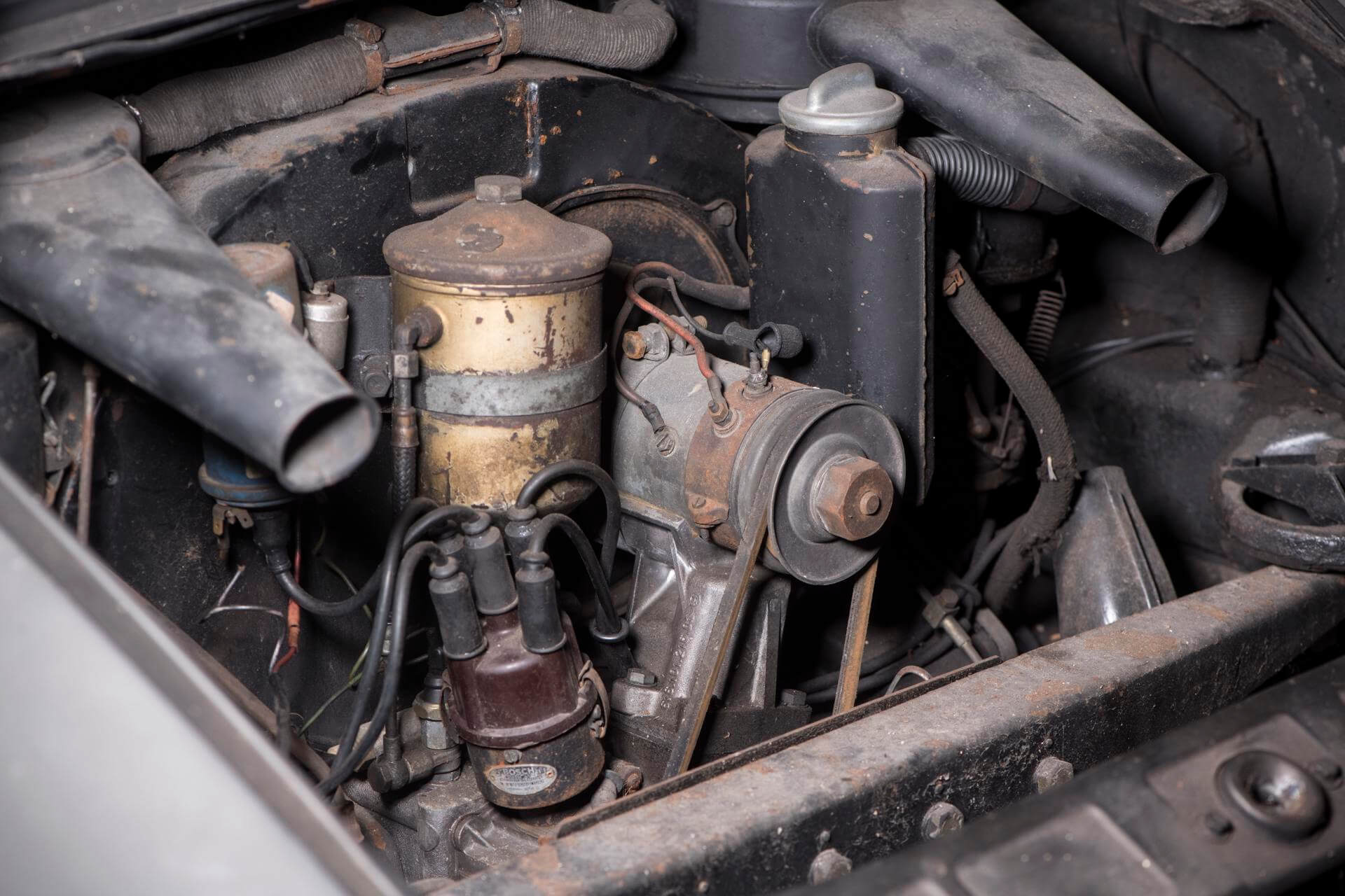 Grooters stored the car two years later. We were notified about the cars existents and bought it as a restoration project in 2016. With just 50.137 km on the clock, the car was virtually untouched after nearly 30 years of dry storage. We never came to restoring the car so the car still sported its original black leather interior and remained a beautiful patina. The car was repainted in Schieffergrau along the way.